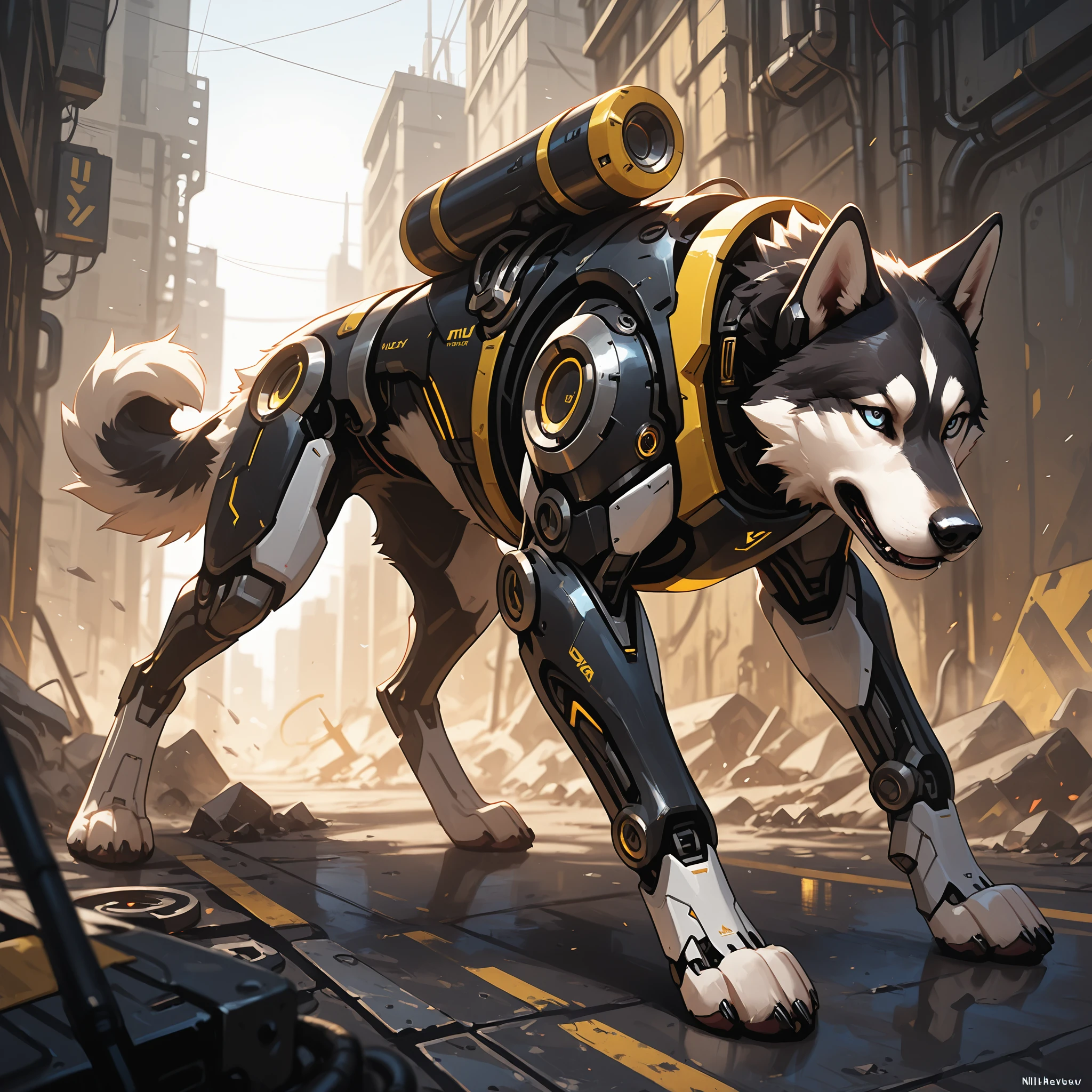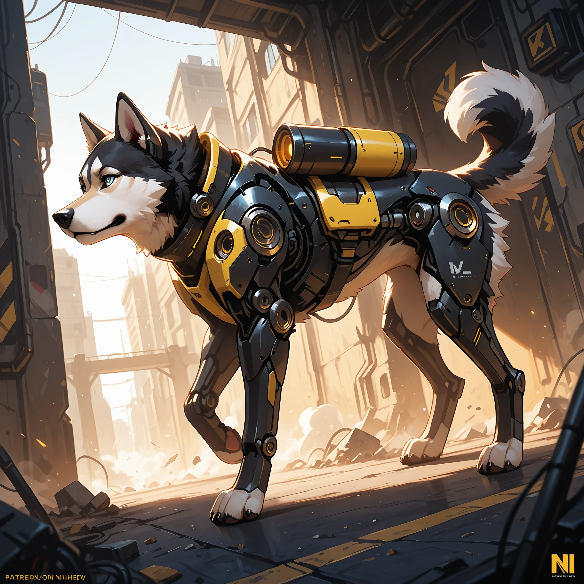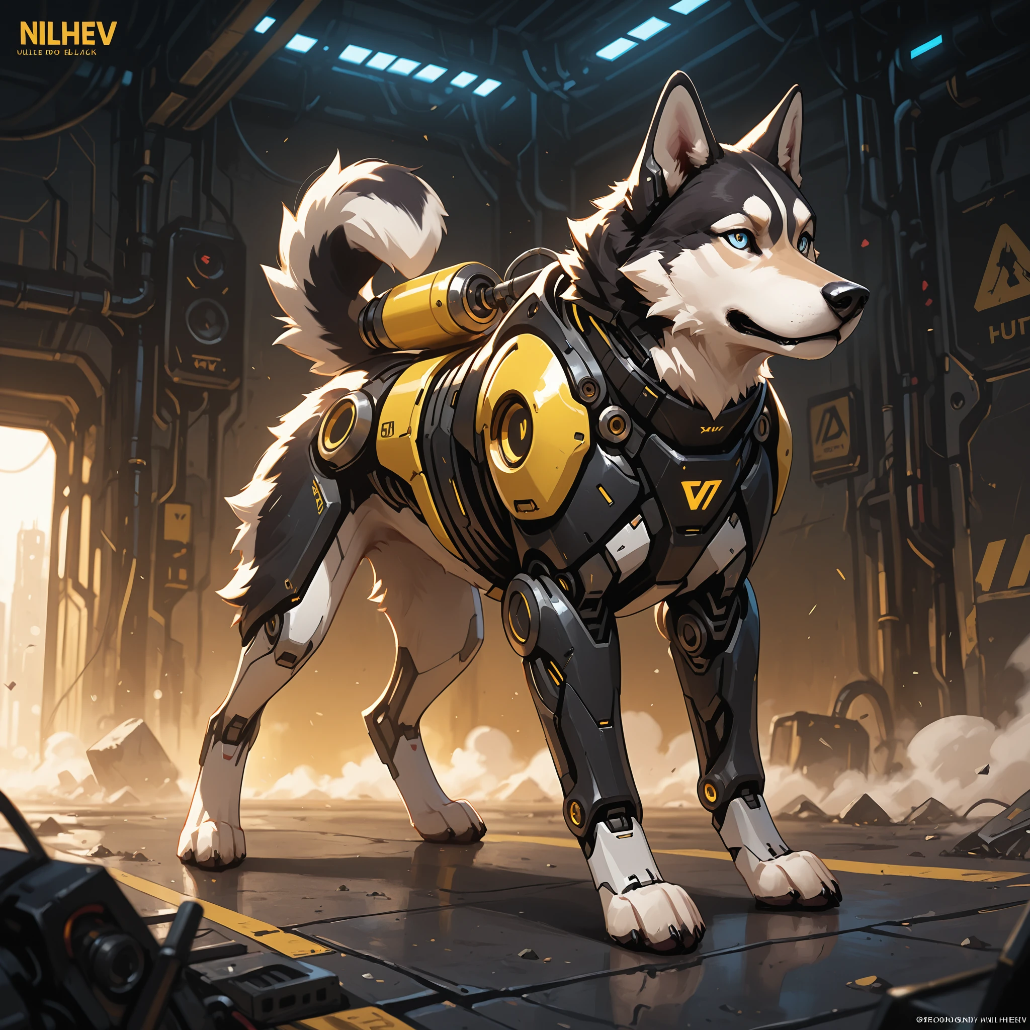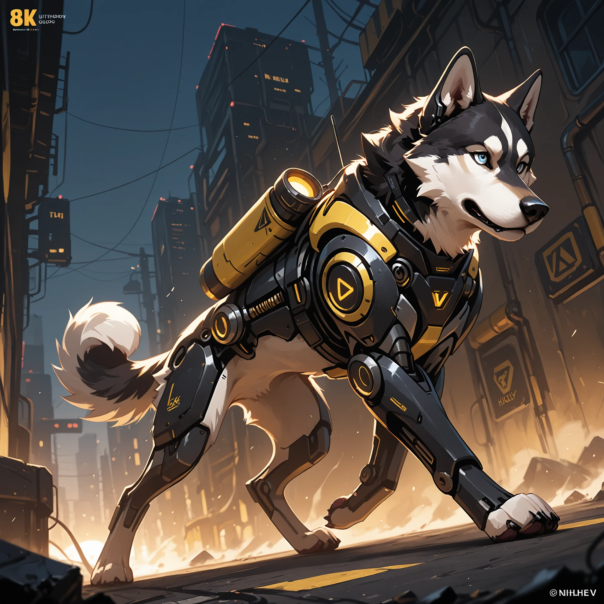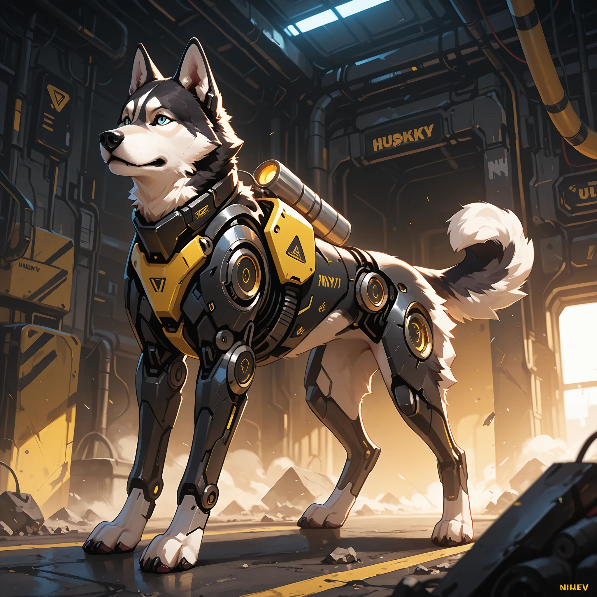 1 dog, Cyborg, solo, Husky, Yellow and Black,
