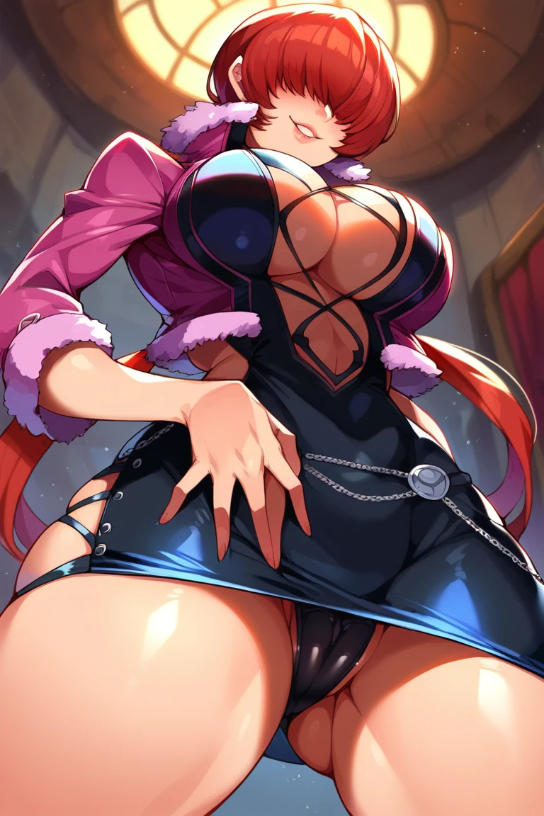 sh3rm1e, red hair, hair over eyes, split ponytail