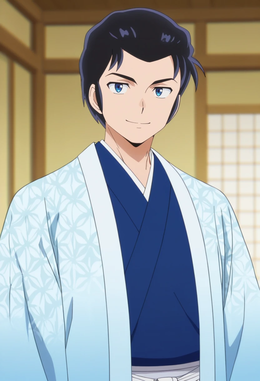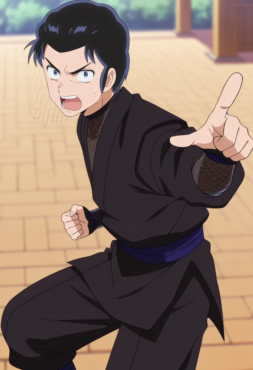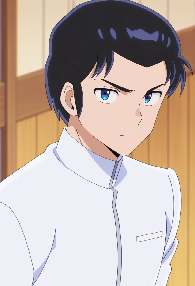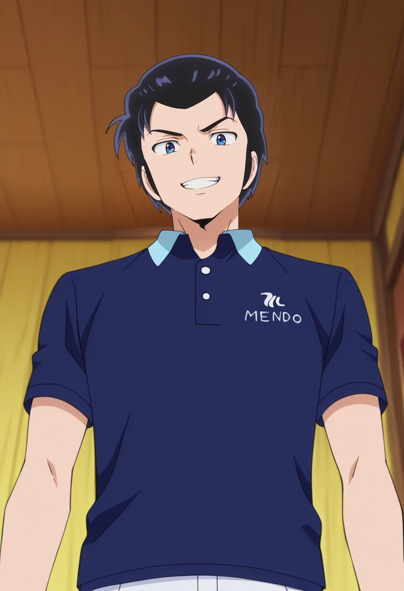 mendo, black hair, blue eyes, short hair