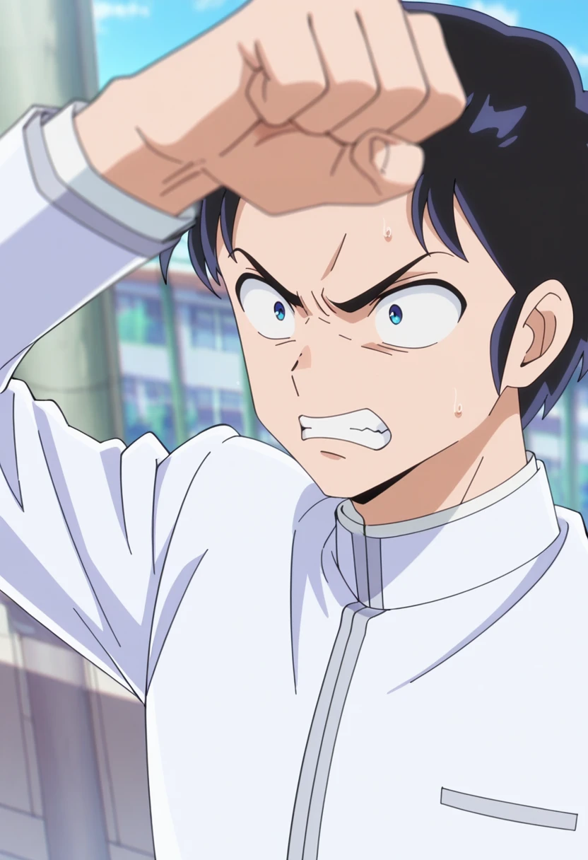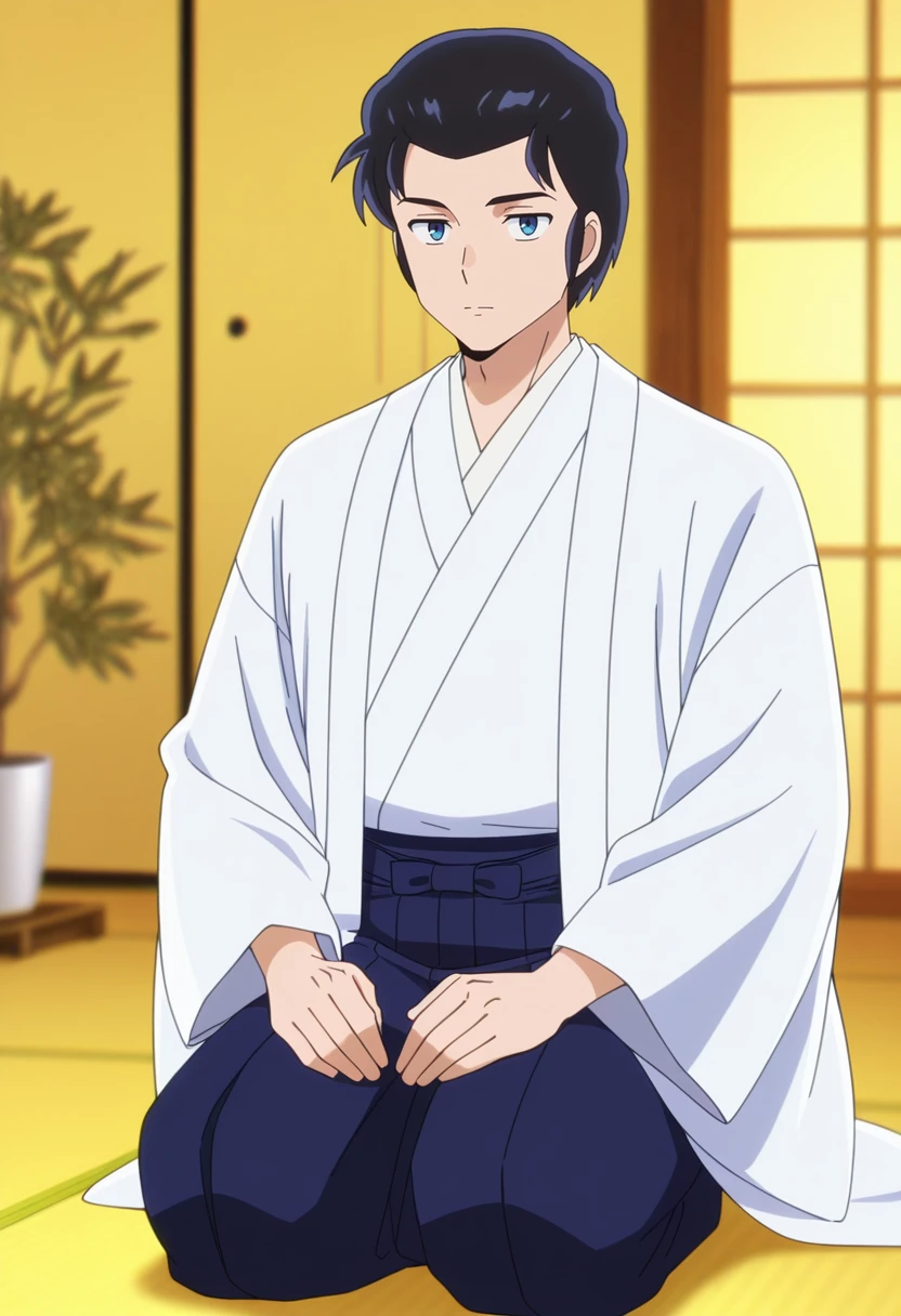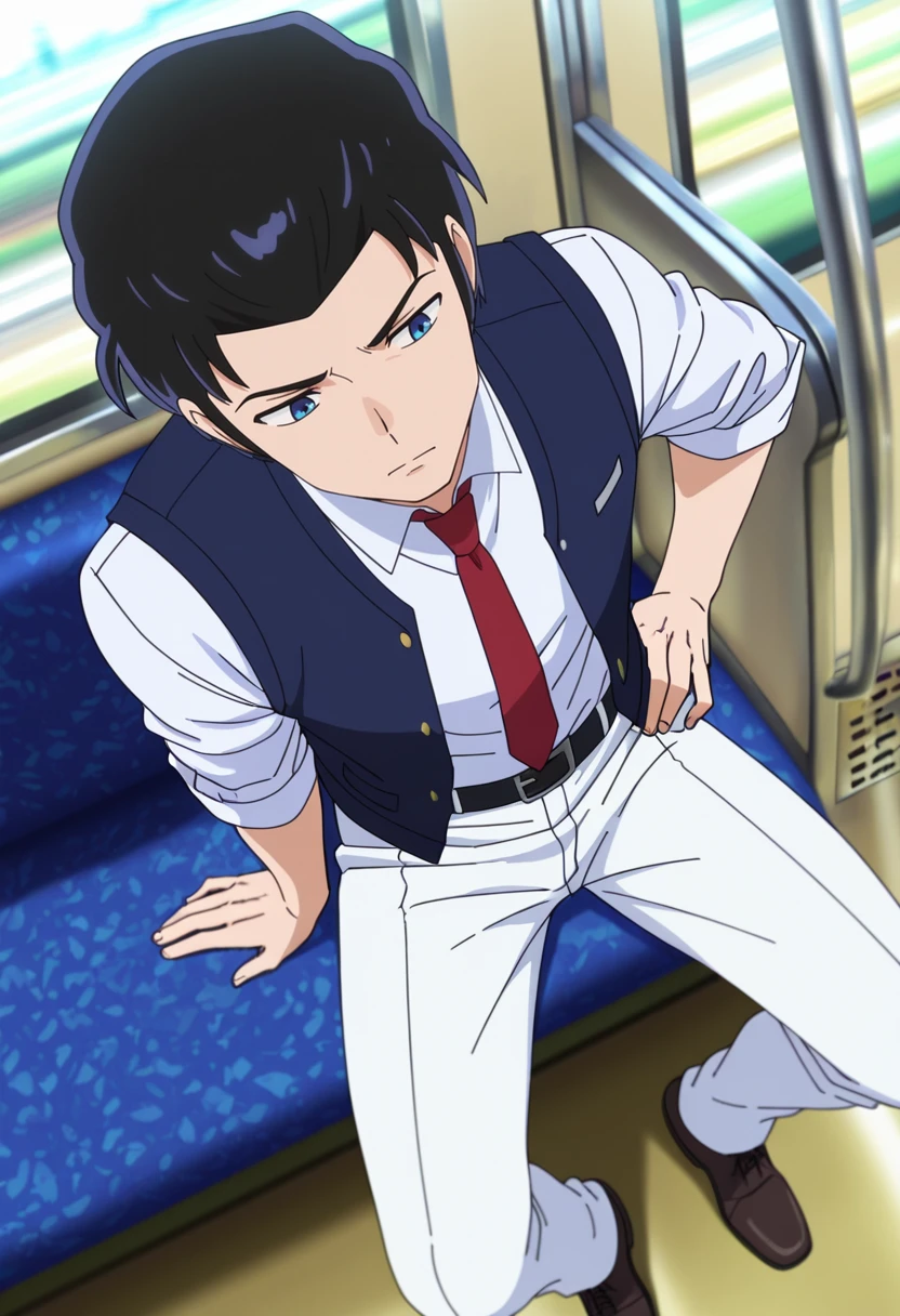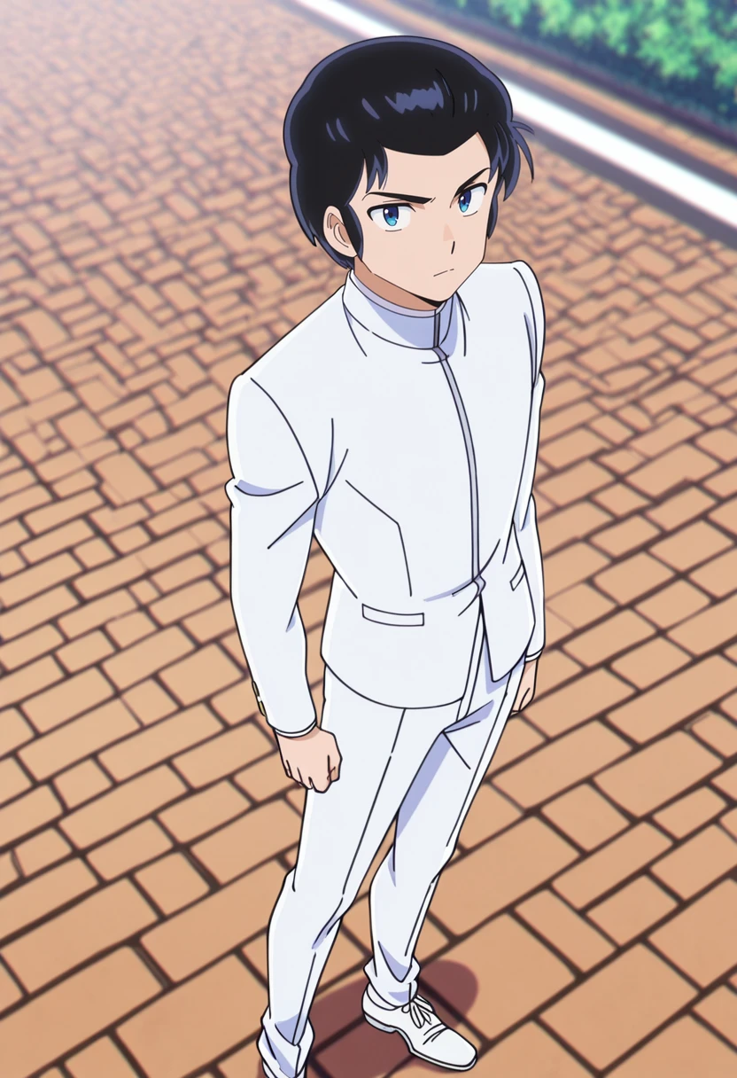 mendo, black hair, blue eyes, short hair