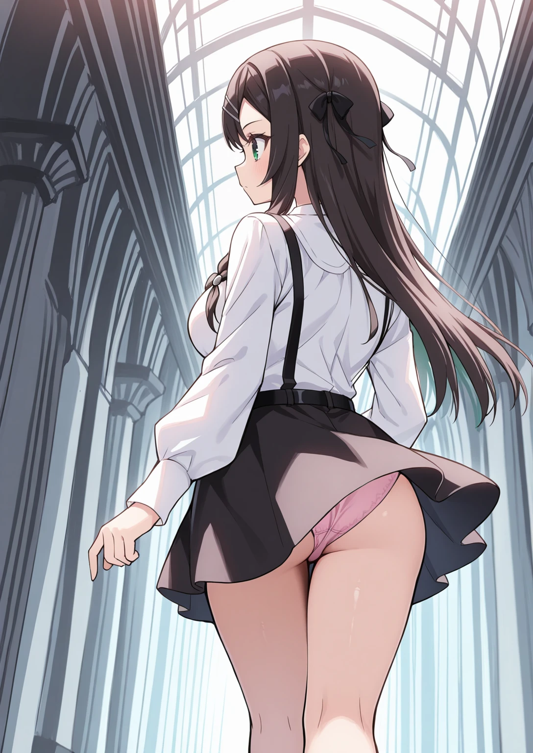 Administrarot: white shirt, black bowtie, frilled shirt, black skirt, miniskirt, black belt, suspender skirt
