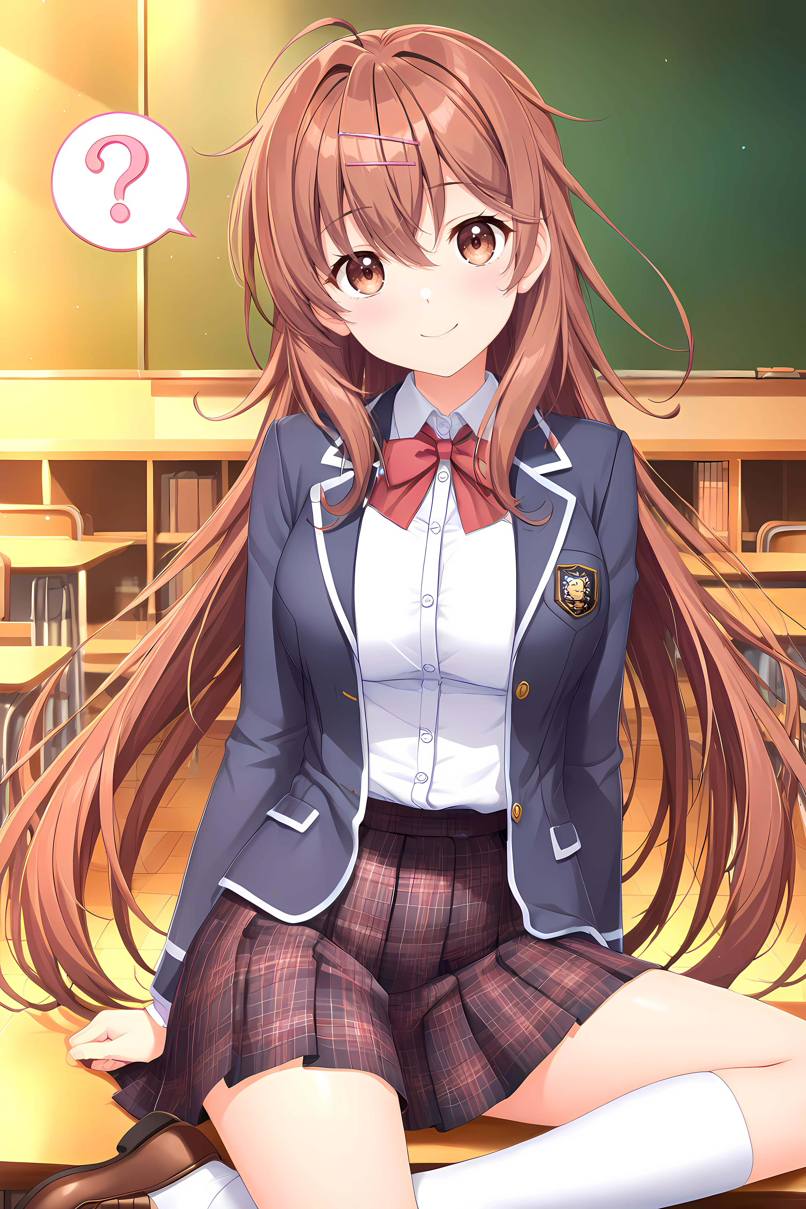 Base: Aisa,Brown hair,very long hair,brown eyes,hairclip,hair ornament,ahoge,bangs,hair between eyes