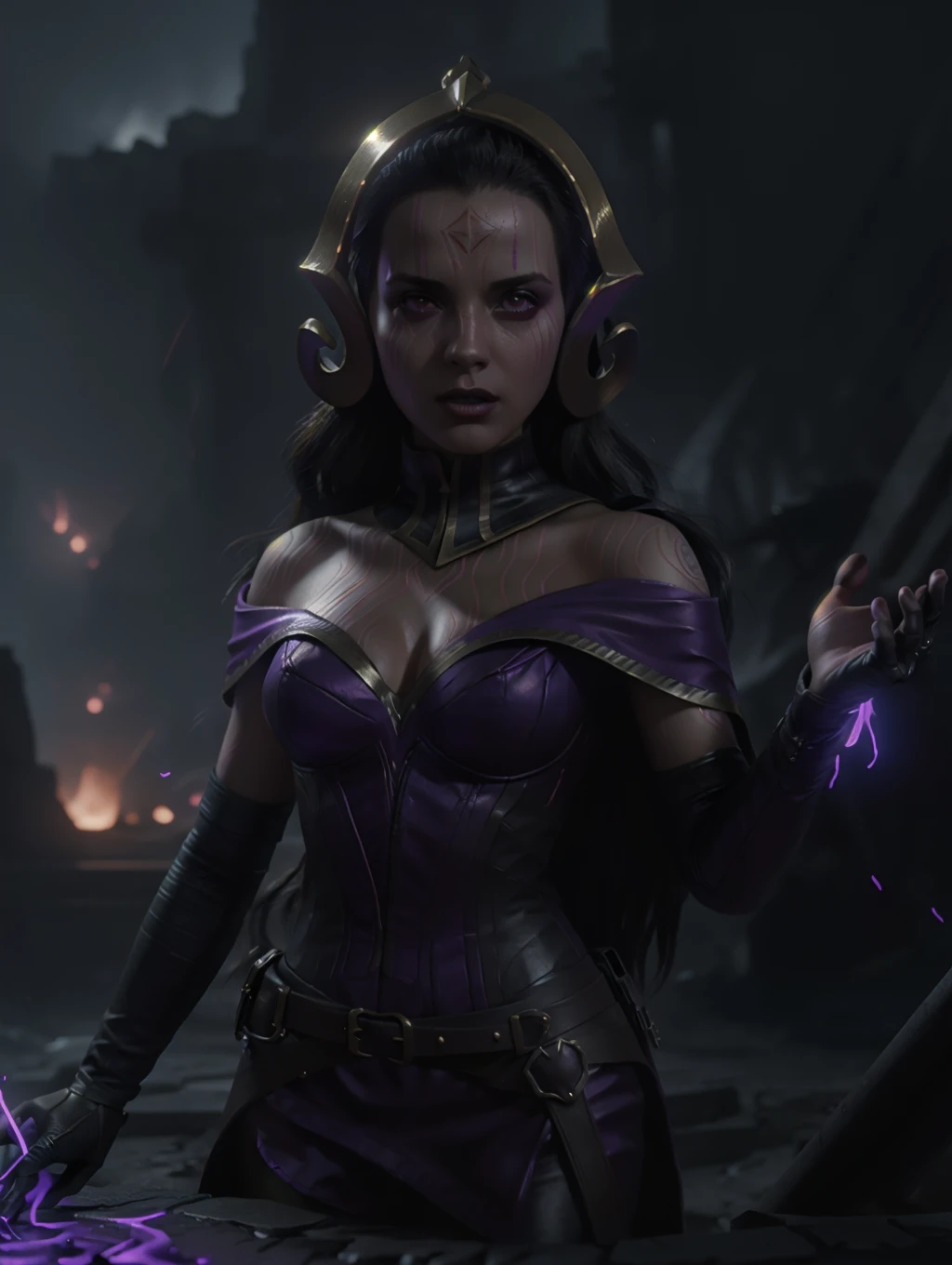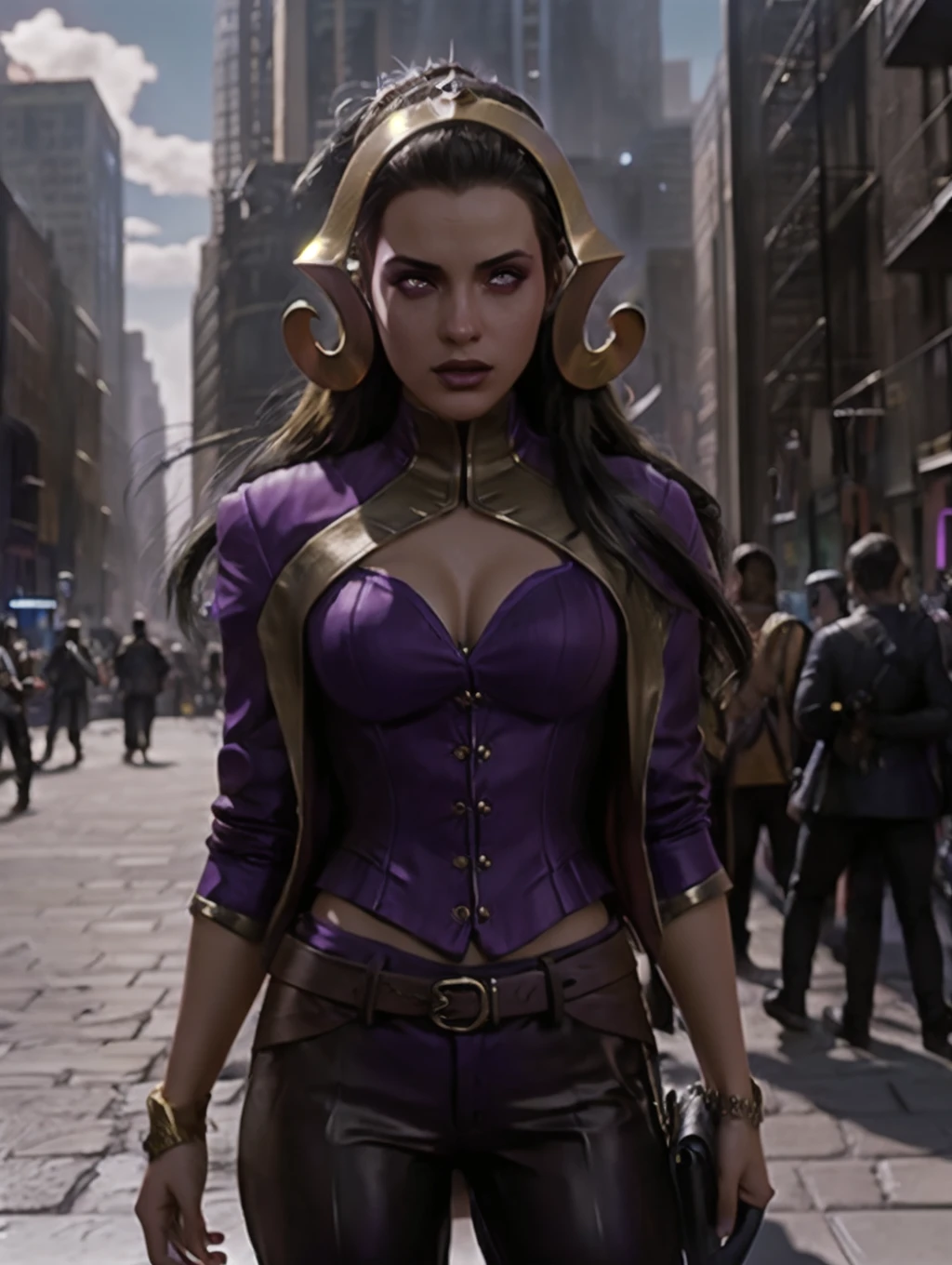 This is Liliana Vess, one of the planewalkers from the cards game "Magic the Gathering".