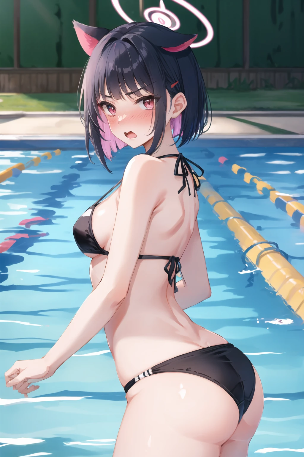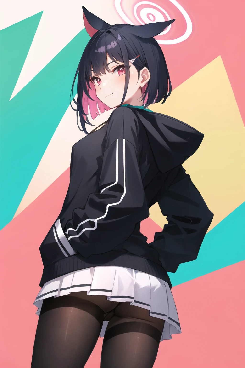 kazusa, 1girl, animal ears, colored inner hair, halo, short hair