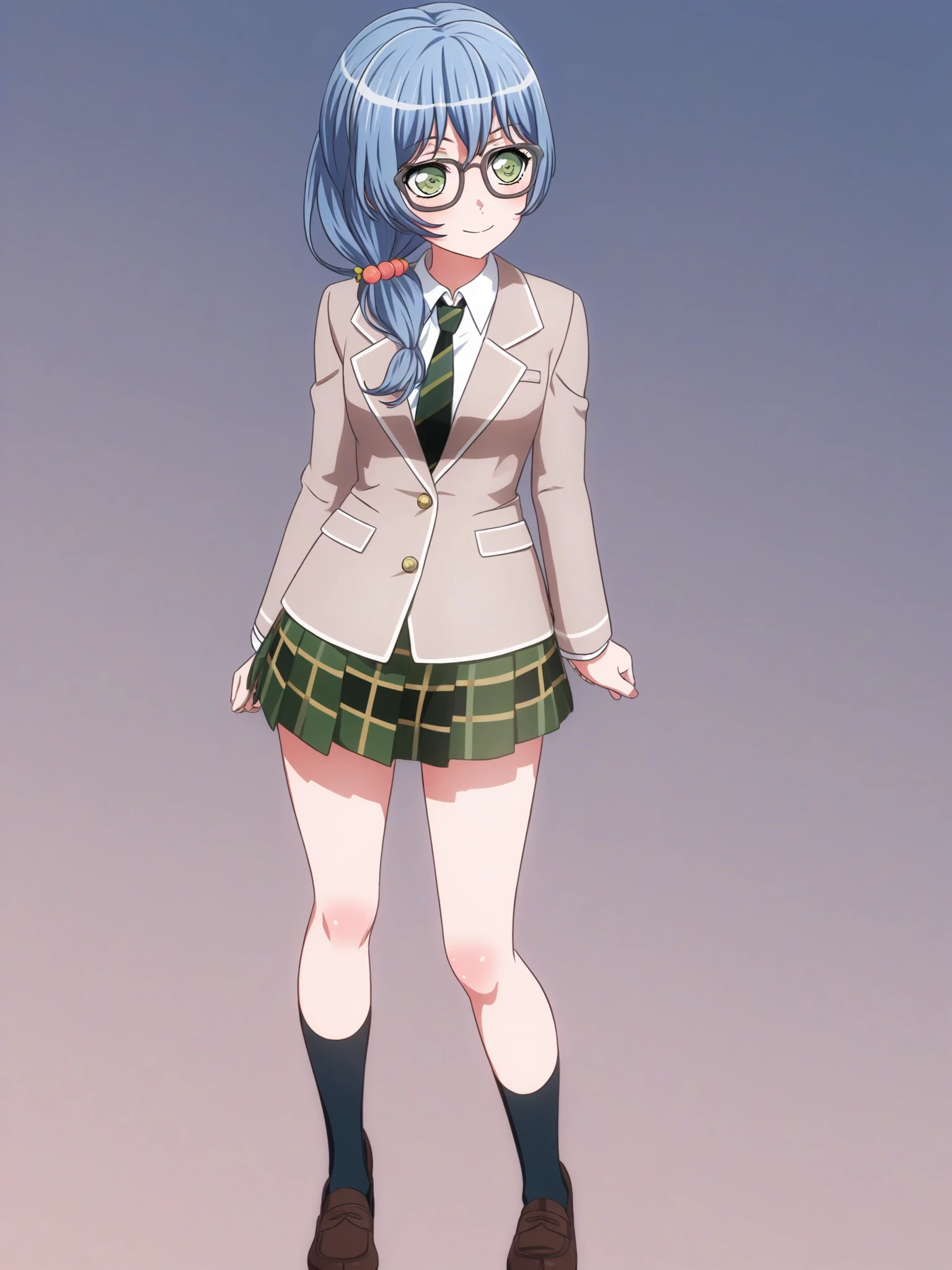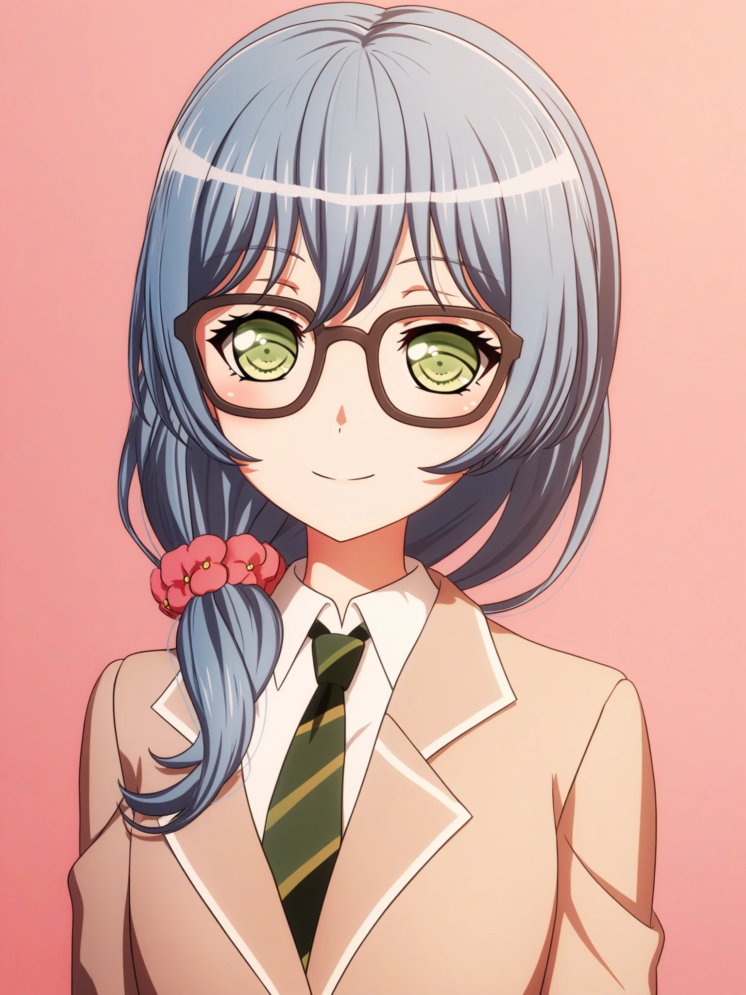 asahi rokka,green eyes,blue hair,glasses,from BanG Dream!,cel shading,