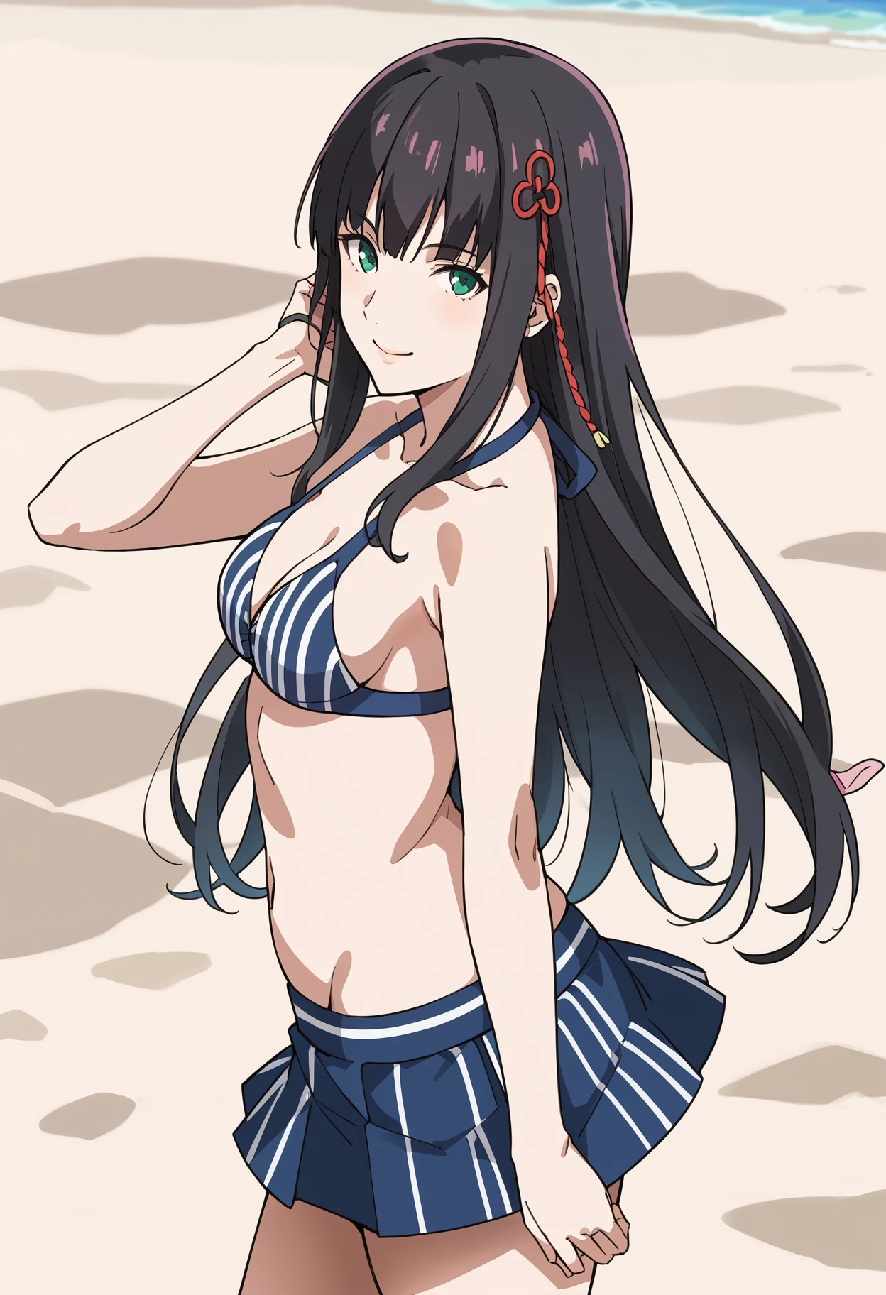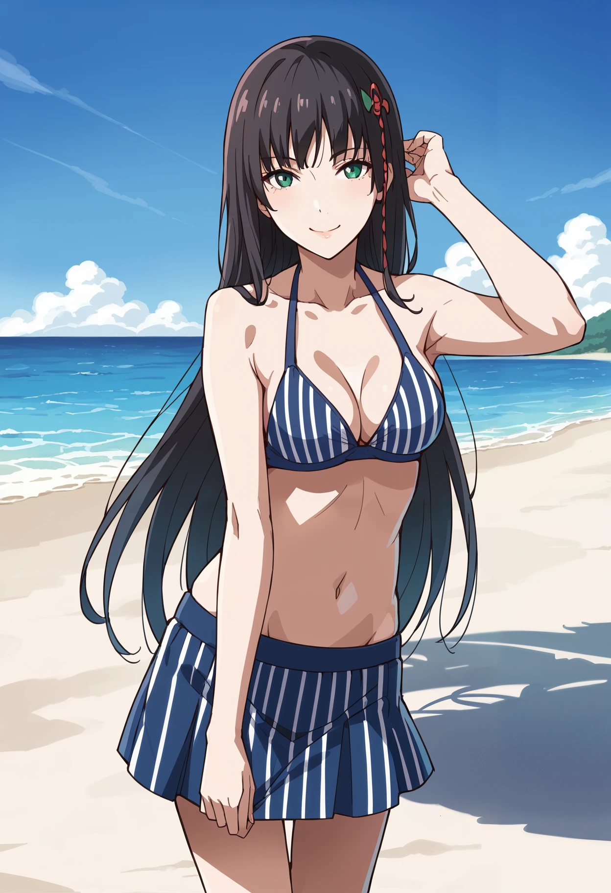 p5hifumi-swim, blue bikini, striped bikini, bikini skirt,