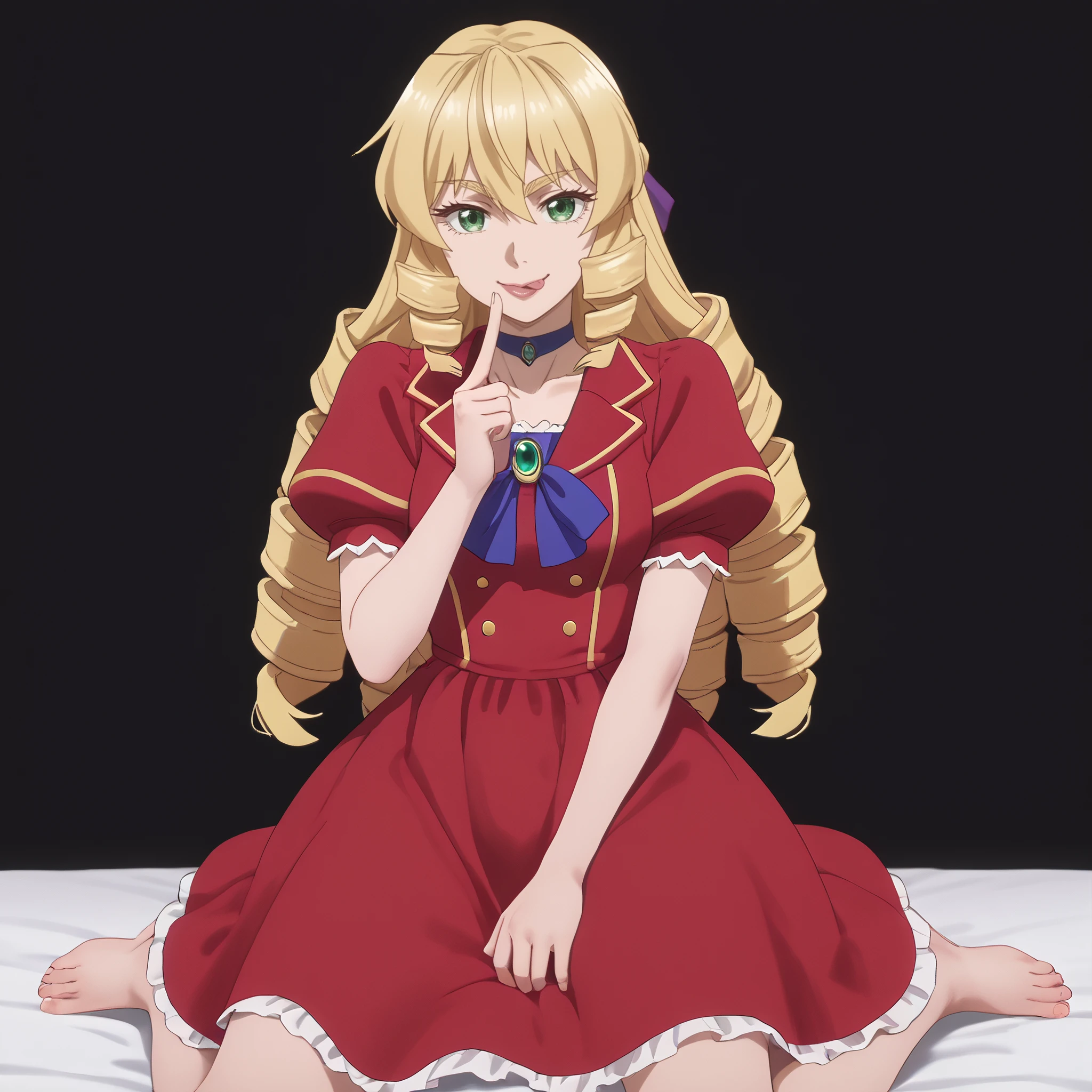 GraceFrilledDress, dress, bow, hair blow, choker, collarbone, frills, ringlets, ribbon, short sleeves, red dress, puffy sleeves,
