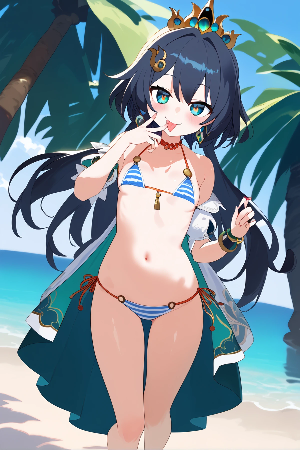 yunli, default clothes, 1girl, solo, barefoot, dress, jewelry, navel,