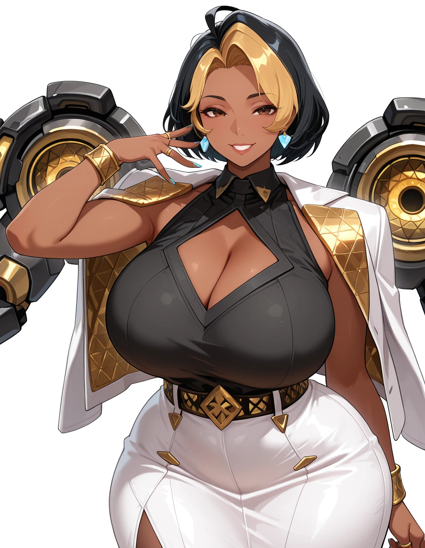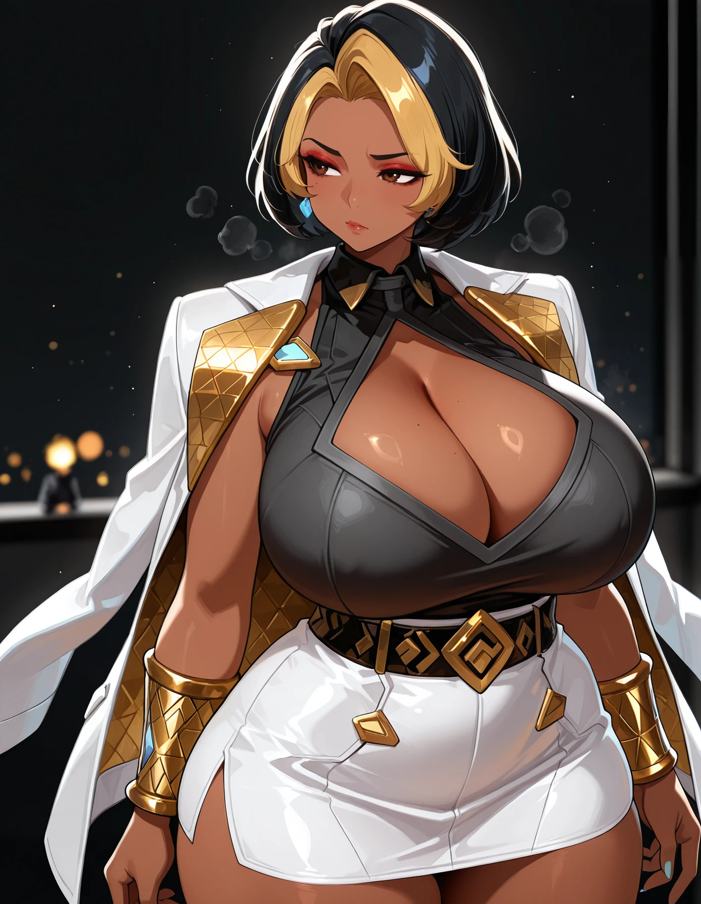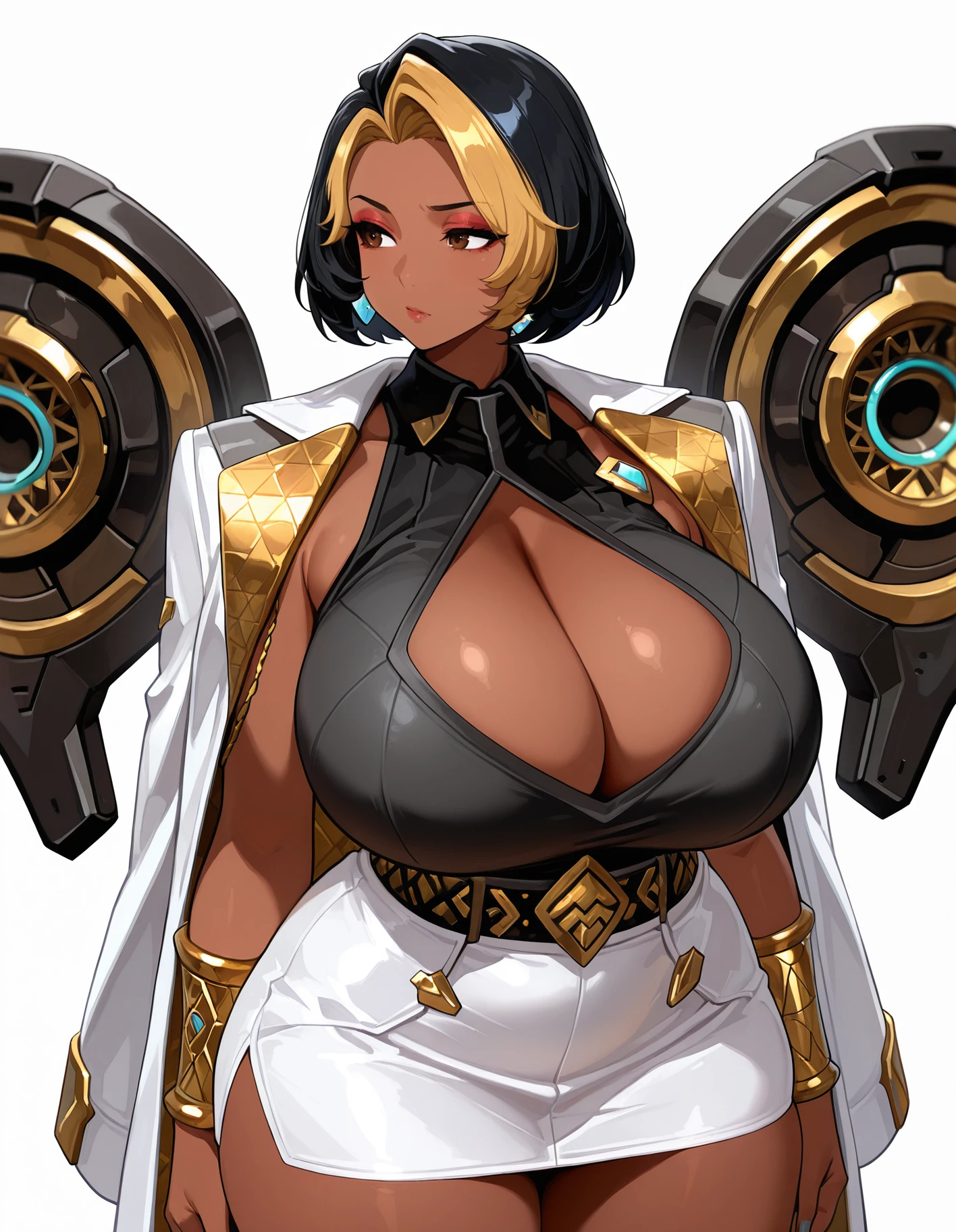 domina \(overwatch\), blonde hair,black hair,brown eyes, short hair, dark-skinned female