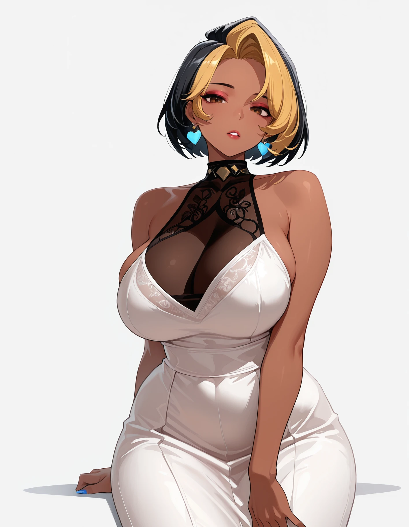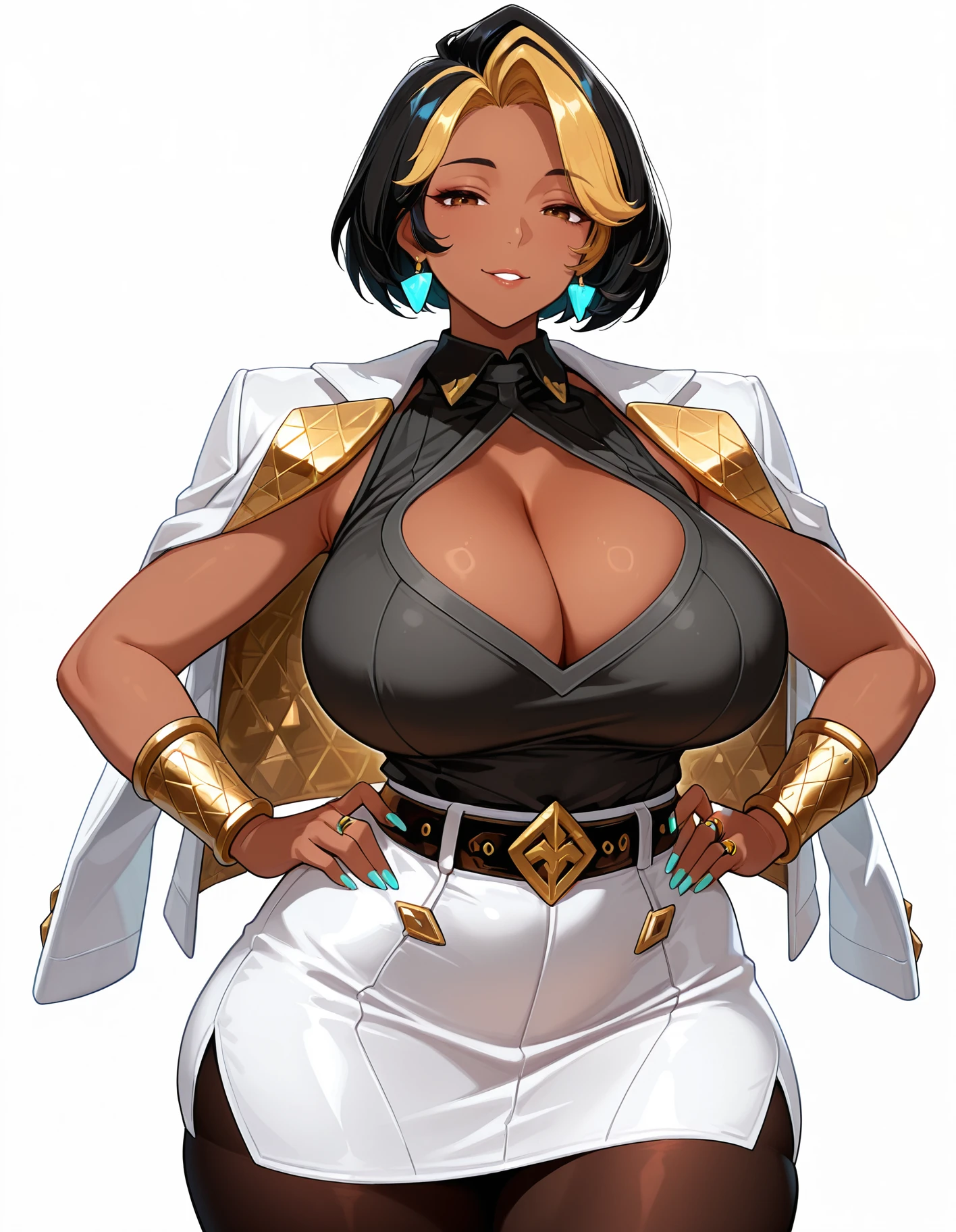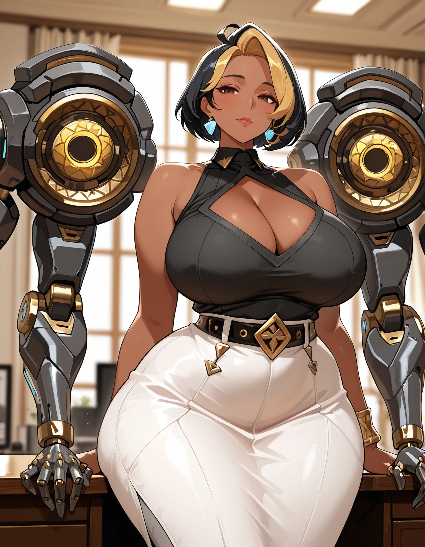 domina \(overwatch\), blonde hair,black hair,brown eyes, short hair, dark-skinned female