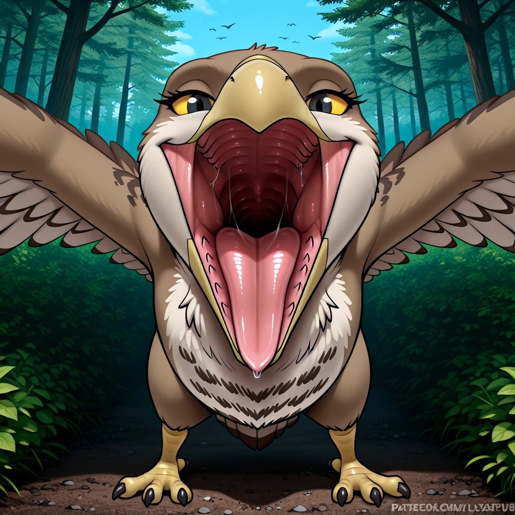 feral, avian, bird, beak, buzzard, accipitriform, claws, avian feet, tan feathers, white belly, brown details, two tone body, black eyes, yellow sclera, eyelashes