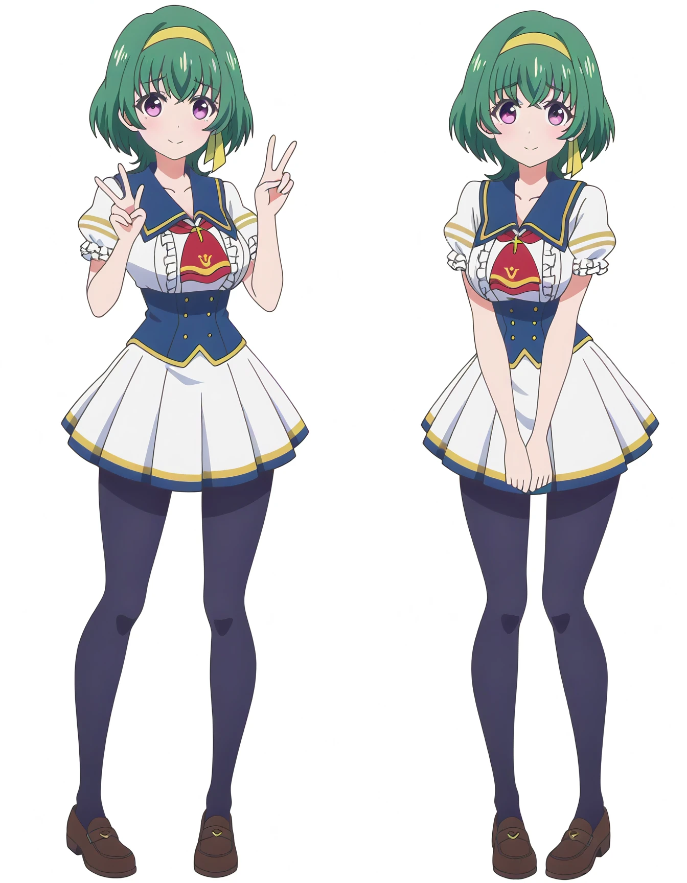 "white pleated skirt, pantyhose, short sleeves, loafers, corset