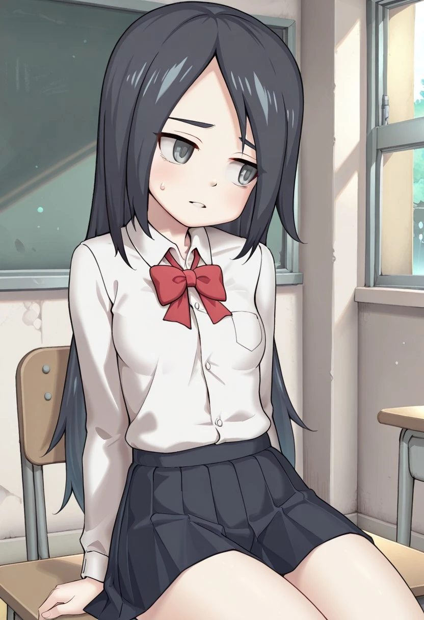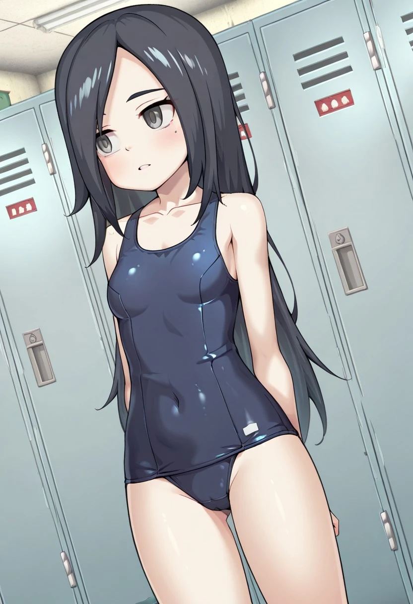 ZoeSOL, pale skin, dark grey hair, grey eyes, baggy eyes, long hair, small breast