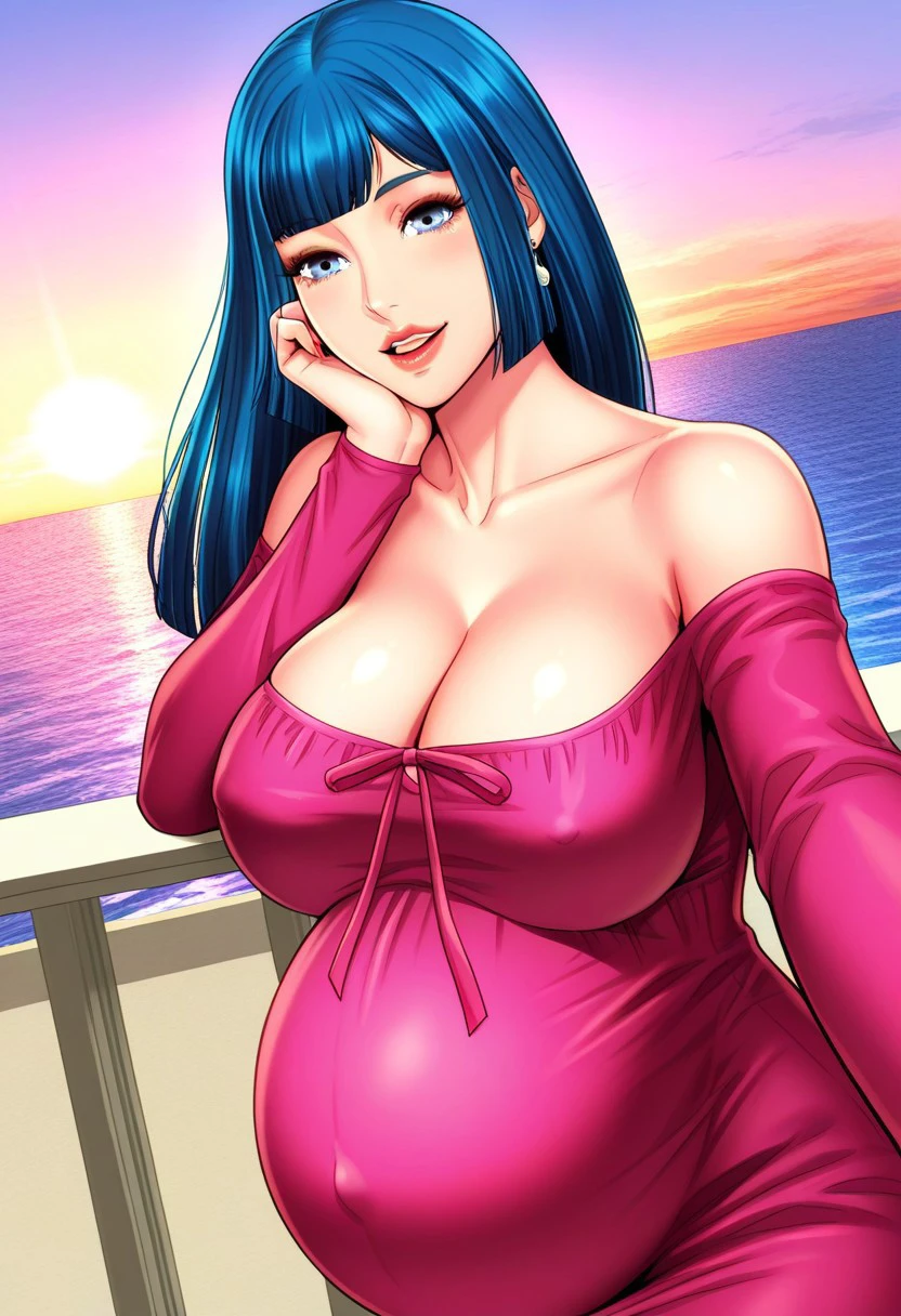 (( <lora:ji-woo:1> , ji-woo, thin waist, wide hips, beautiful skin, piercing light blue eyes, clear eyes, bright pupils, beautiful eyes, beautiful long blue hair, long cleopatra haircut, bangs, huge and shaggy breasts, natural beauty, extraordinary beautiful woman, attractive woman, super sexy woman, lustful body, sexy woman with seductive obscene body, sensual body, voluptuous body, sexy beauty, no piercings, no piercing, ))