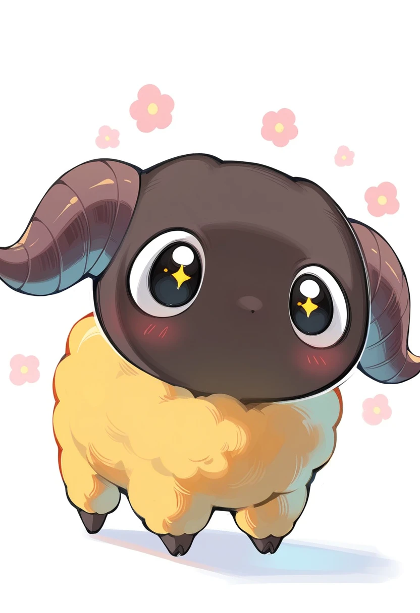 Trigger: "y4n, goat horns,no humans,fluffy,yellow wool,no nose"