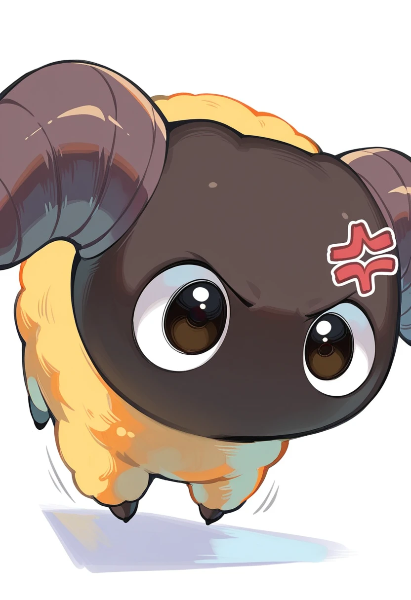 y4n,goat horns,no humans,fluffy,yellow wool,no nose