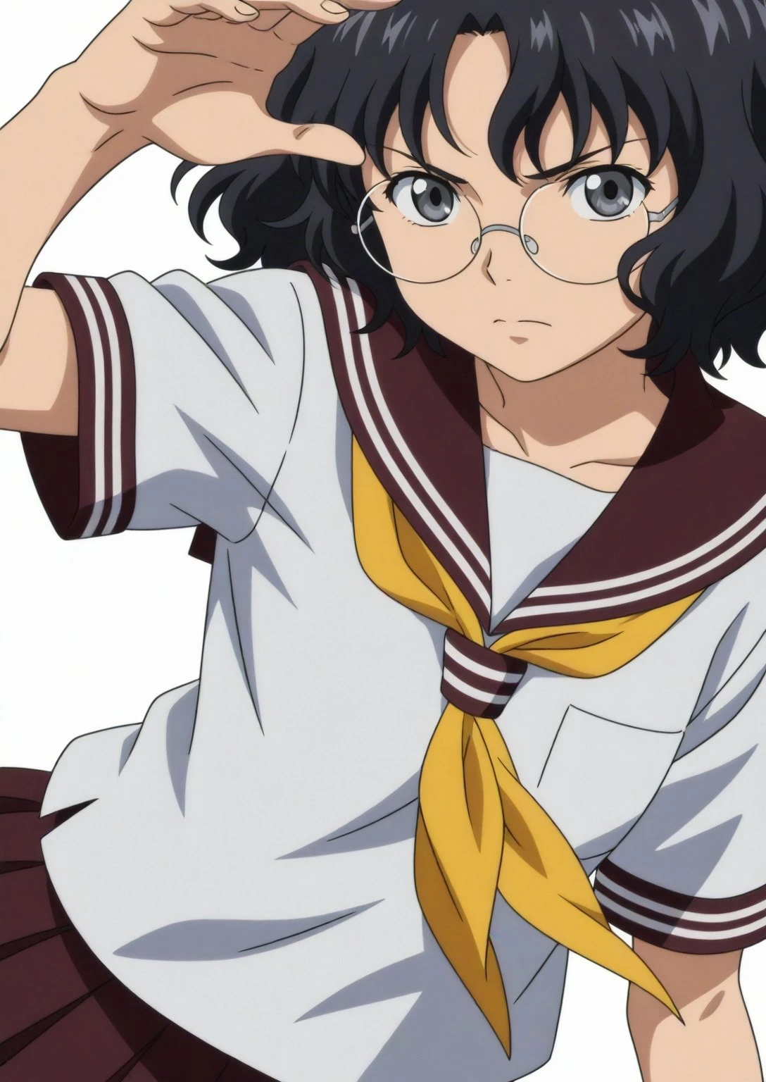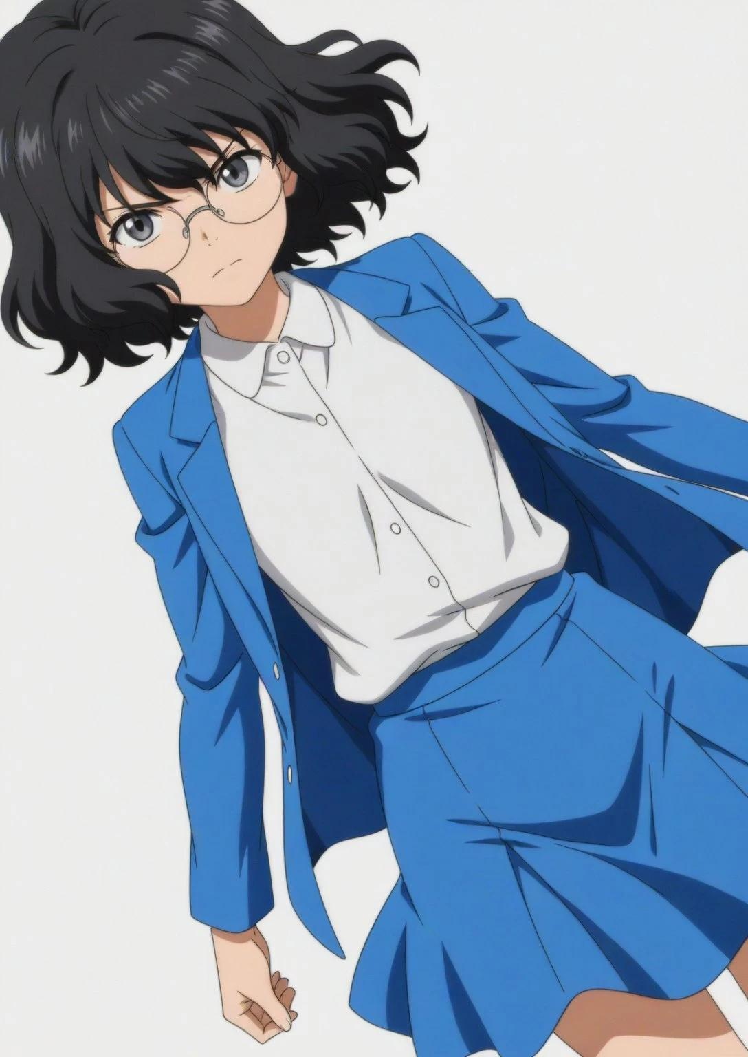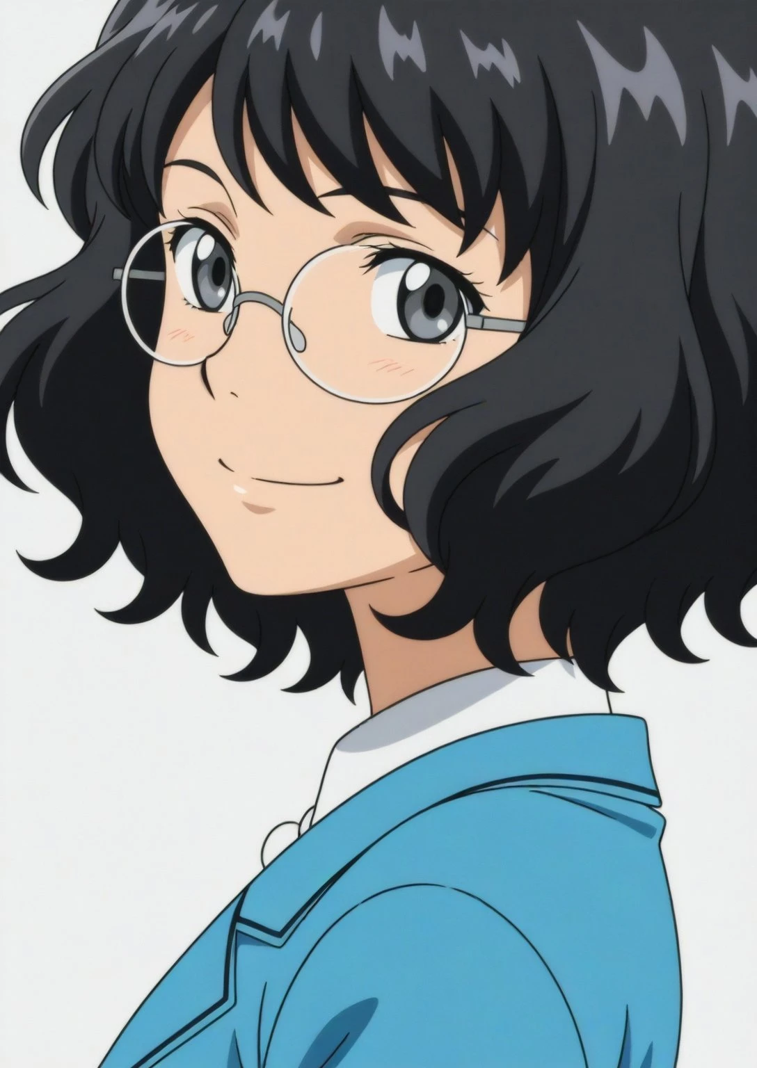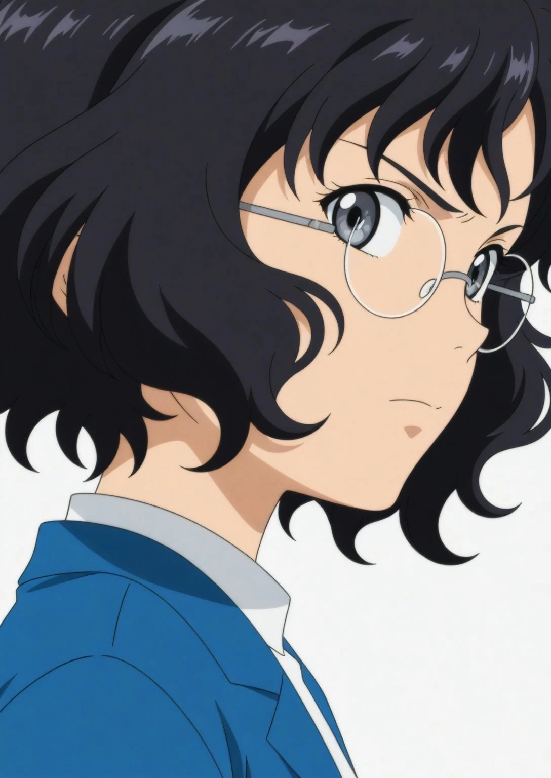 Appearance: sdxl-young-nanase, black hair, short hair, round eyewear, glasses, wavy hair, grey eyes, small , aged down