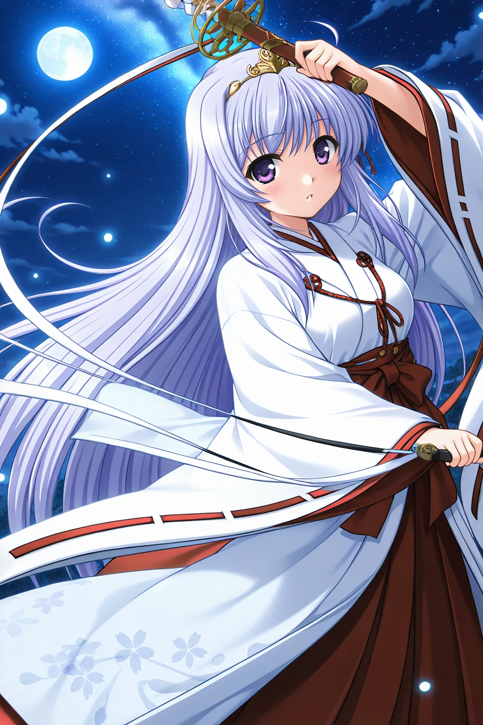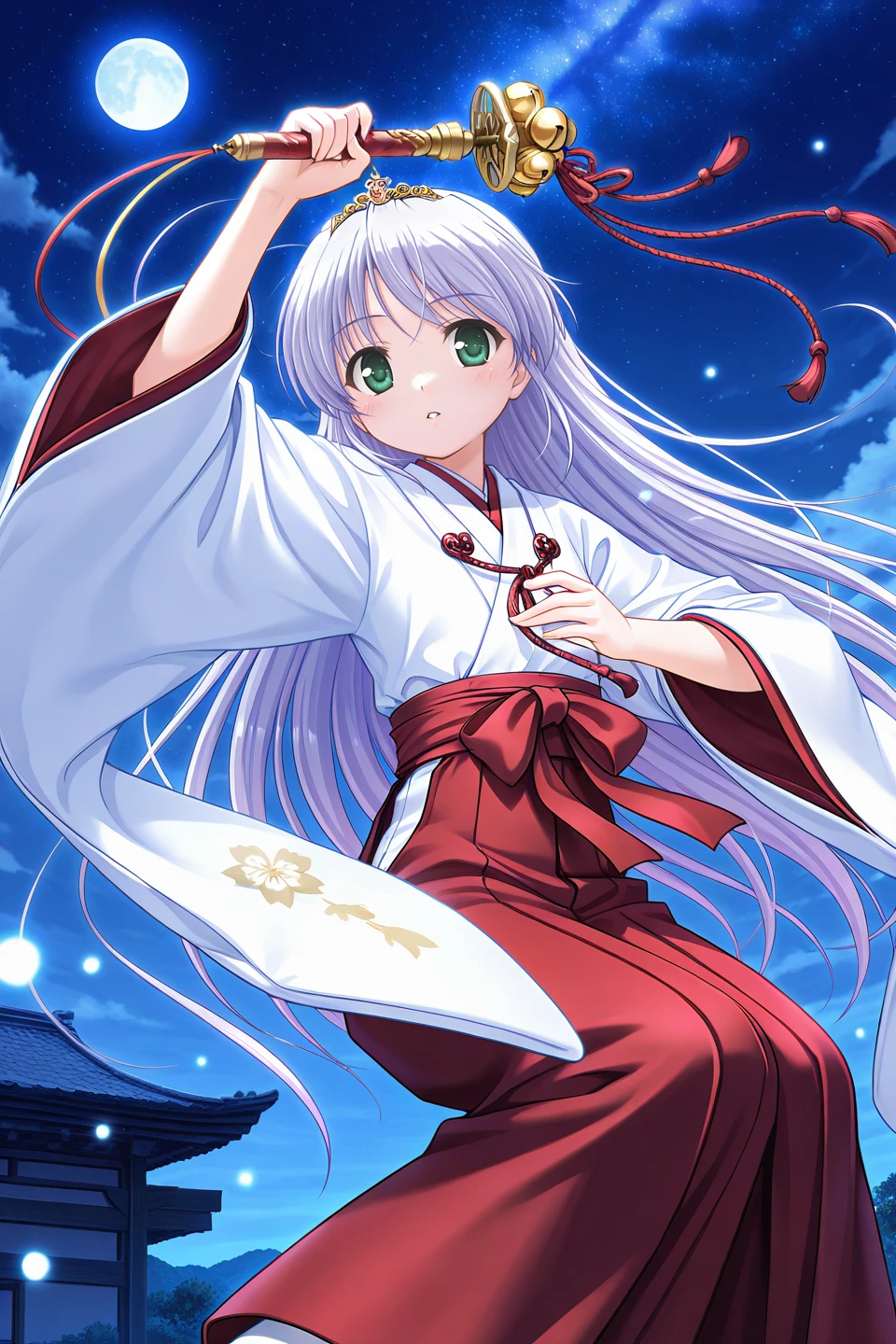 tiara,miko,white kimono,wide sleeves,long sleeves,red hakama,hakama skirt,