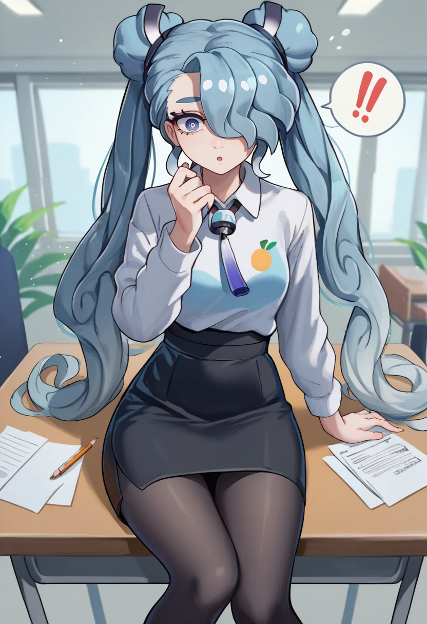 flyingmiku, hair over one eye, twintails, double bun