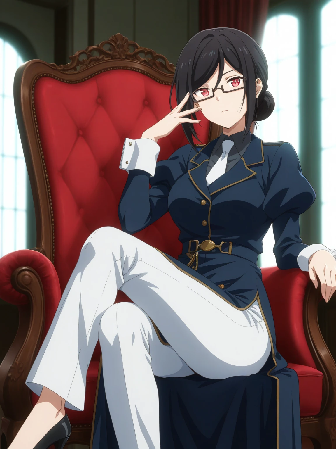 Character: (RisyaEmpire, red eyes, black hair, hair bun, under-rim eyewear)