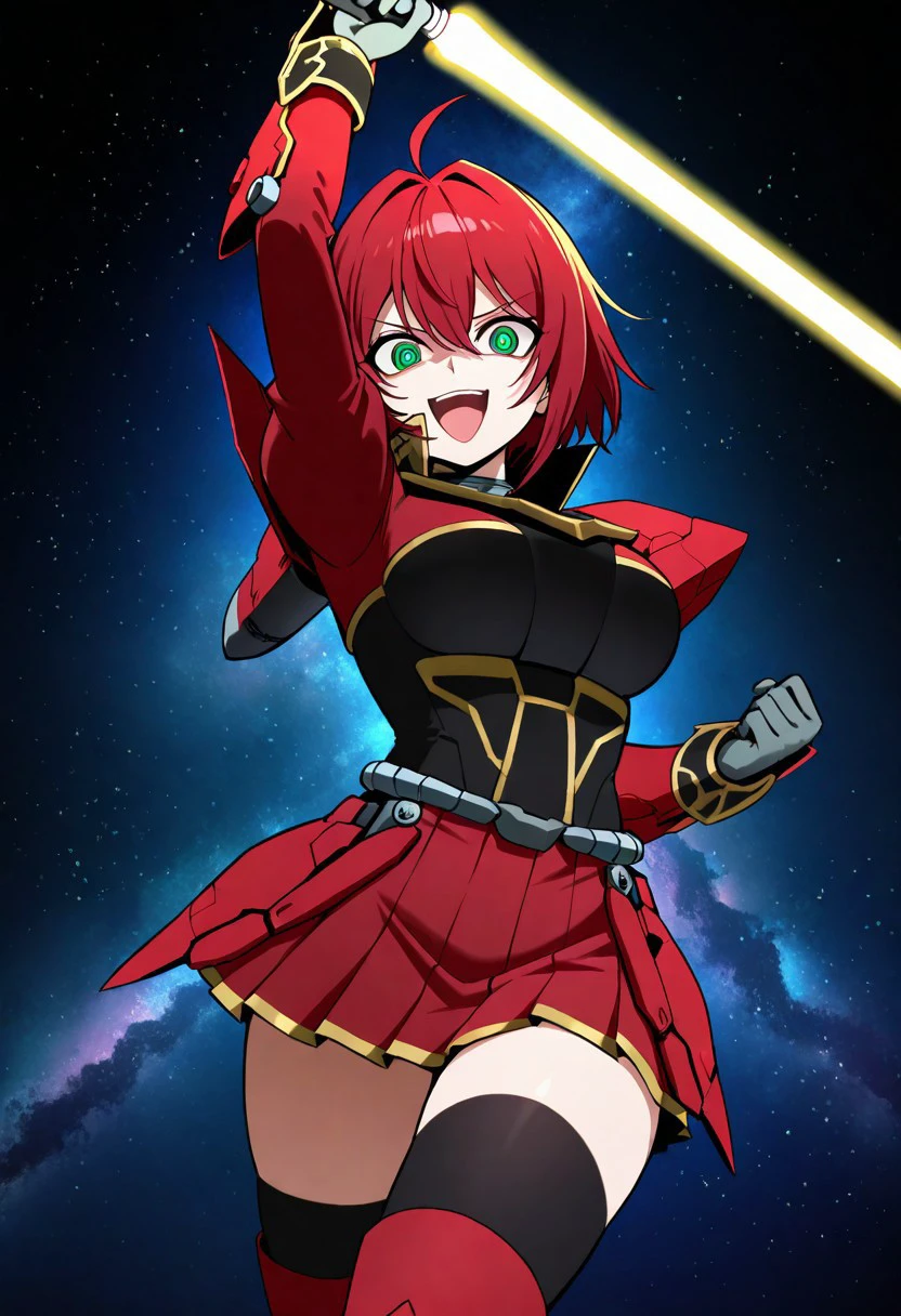 Trigger: 1girl, solo, nanjubami, red hair, short hair, hair vents, green eyes