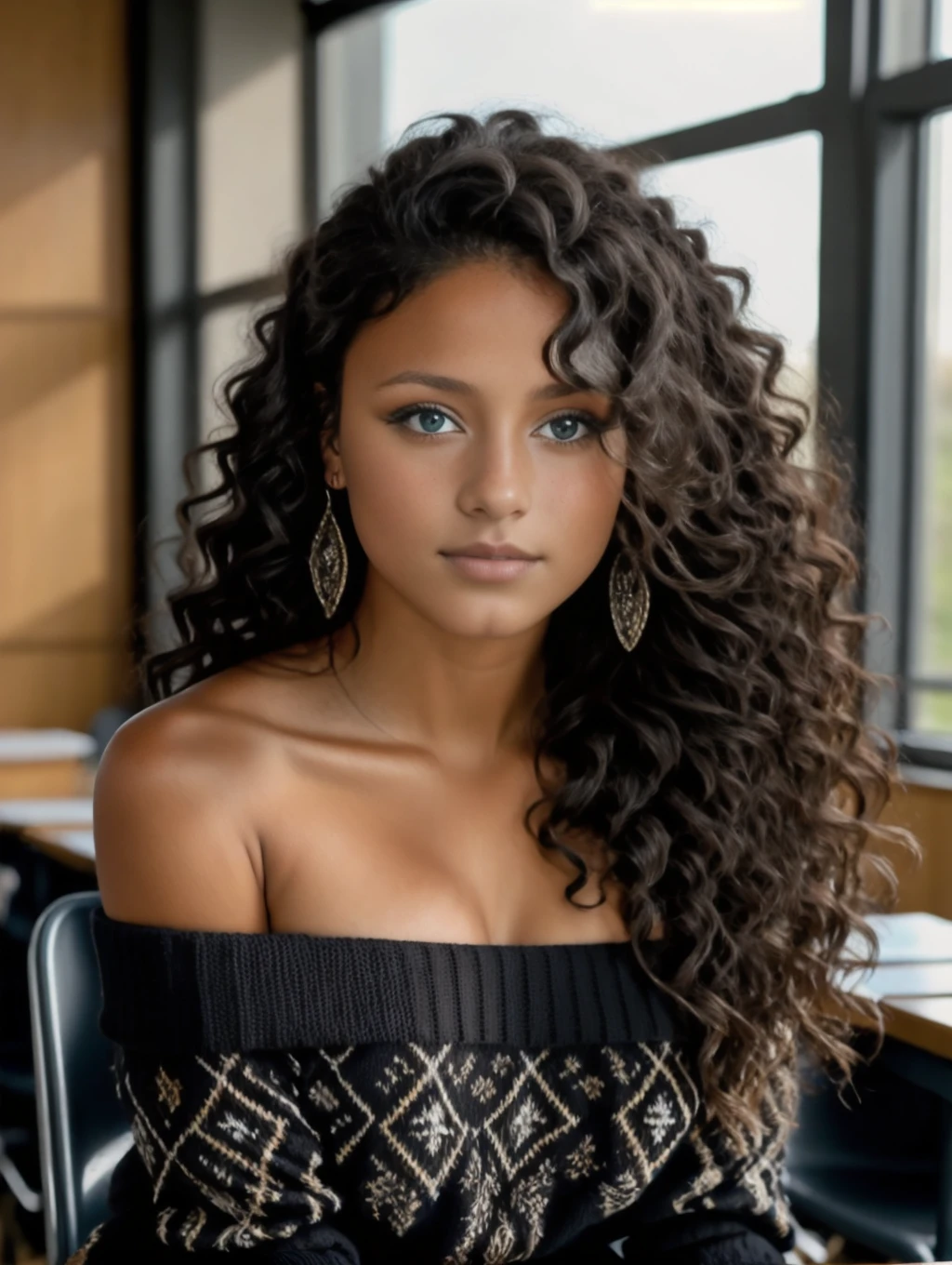 Harmony is suppose to have: long curly dark brown hairs, dark skin, green/blue eyes. Feel free to had this in your prompt for more efficience.