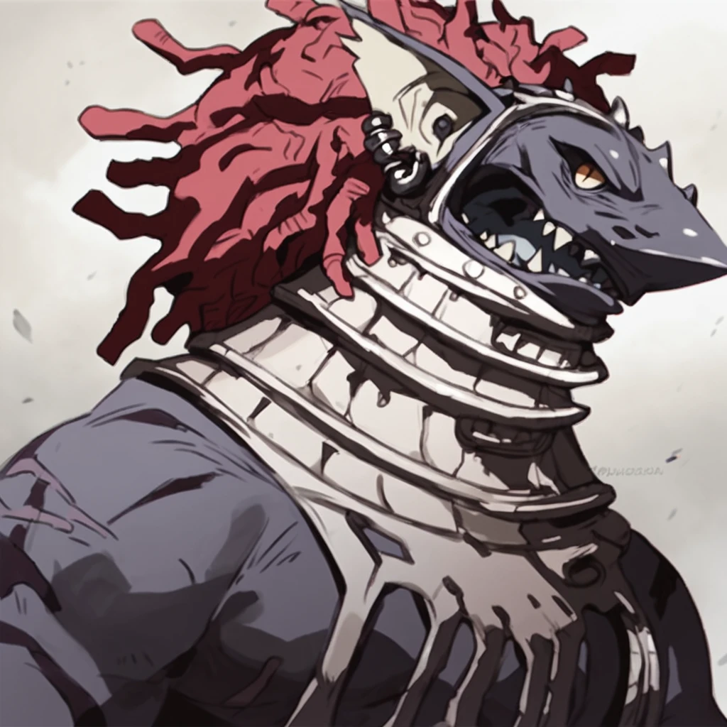 Verg,monster,male,slit pupils,red hairs,dreadlocks,