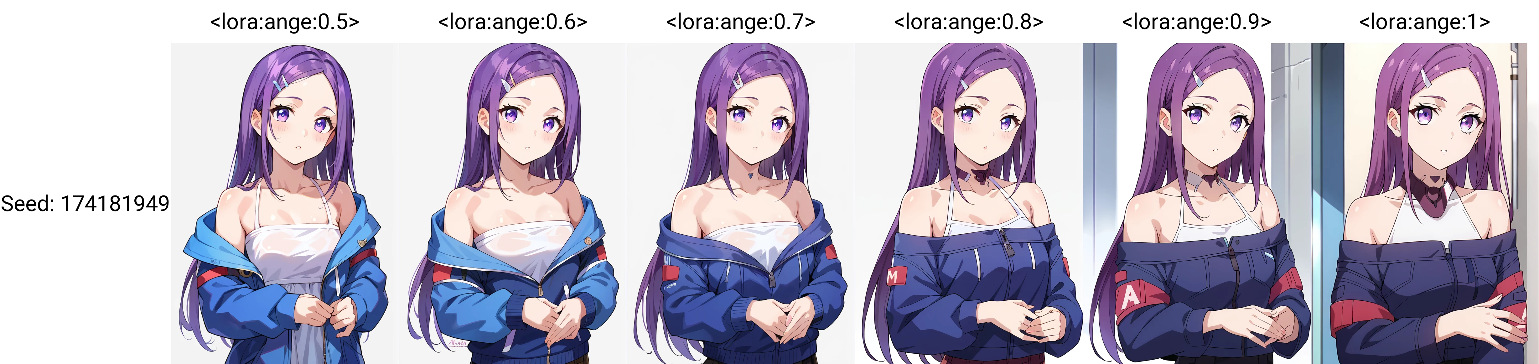 ange, purple hair, purple eyes, long hair, hair ornament, hairclip,forehead