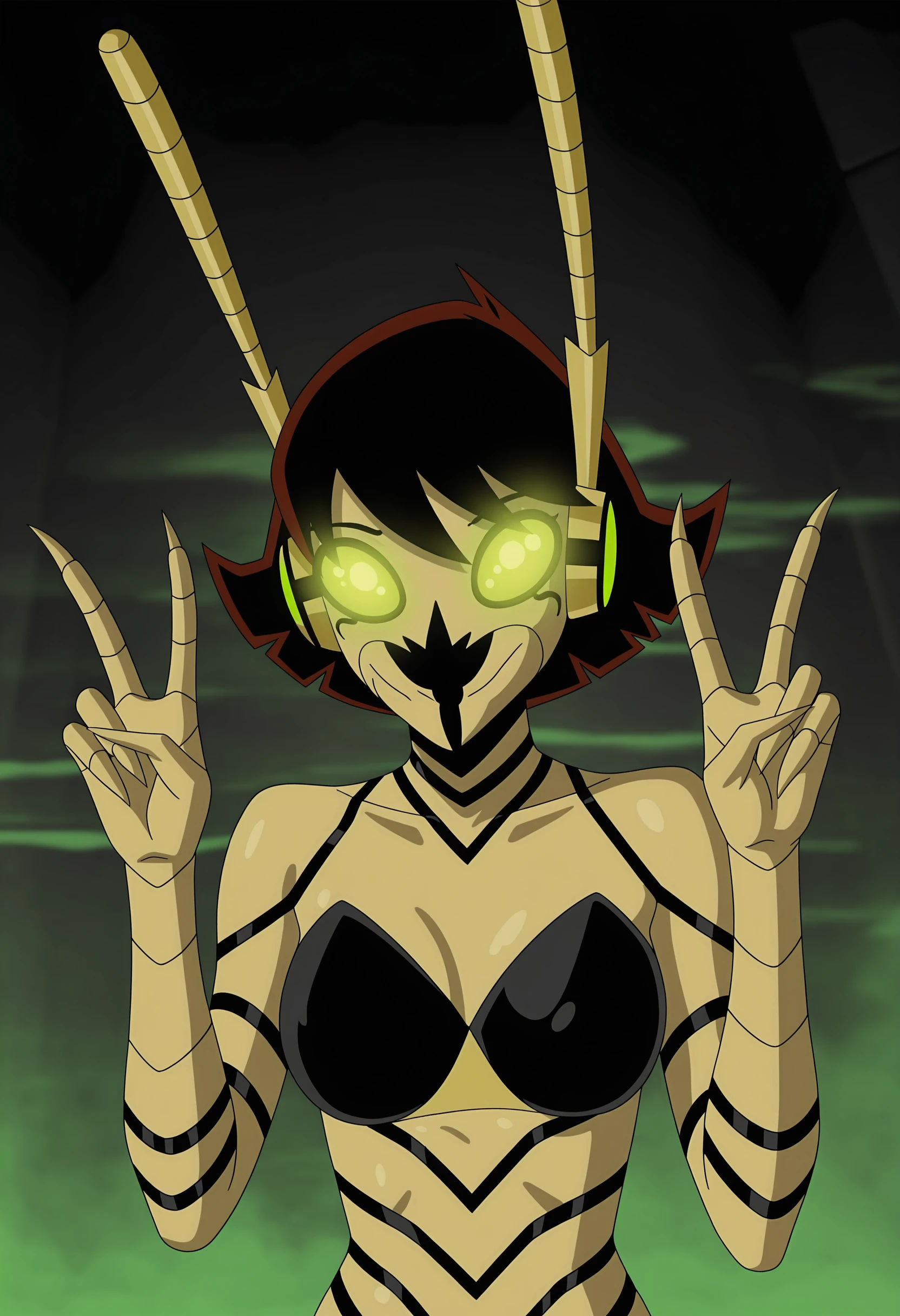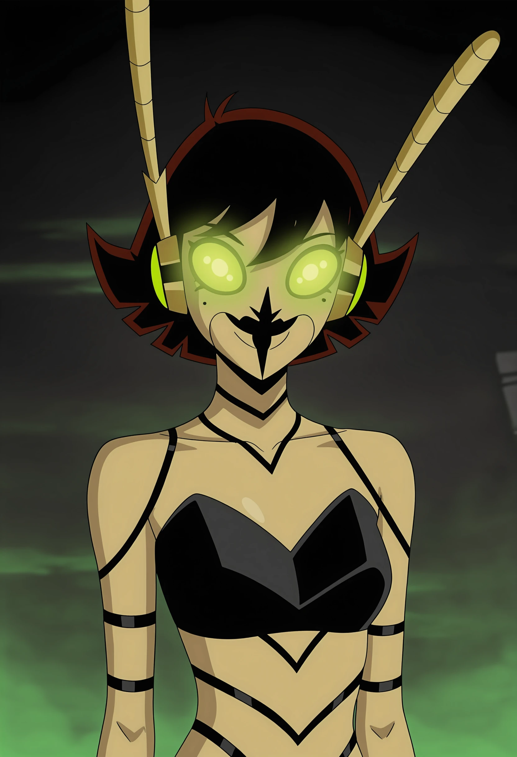 gwspilf, short hair, green eyes, glowing eyes, antennae, skirt, claws