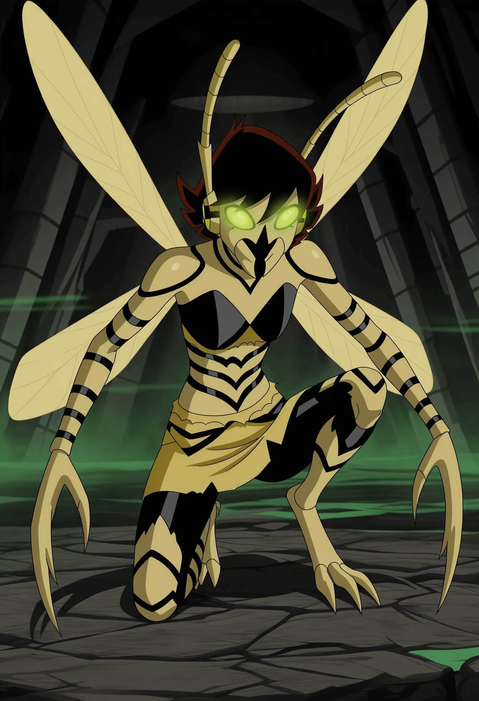 Janet Van Dyne; or the Wasp is a member of the Avengers in the cartoon series. This is her mutated "gamma" form seen in the two-part episode Gamma World.