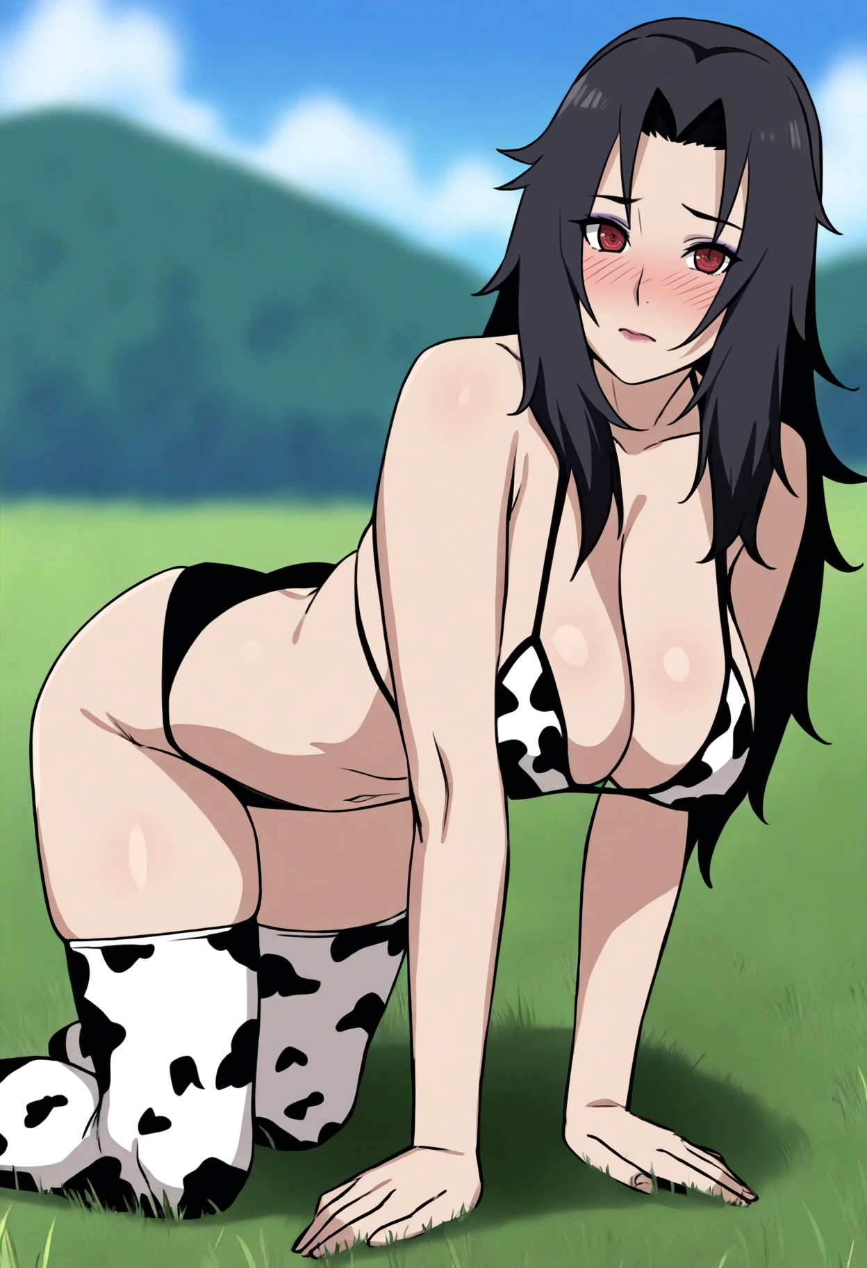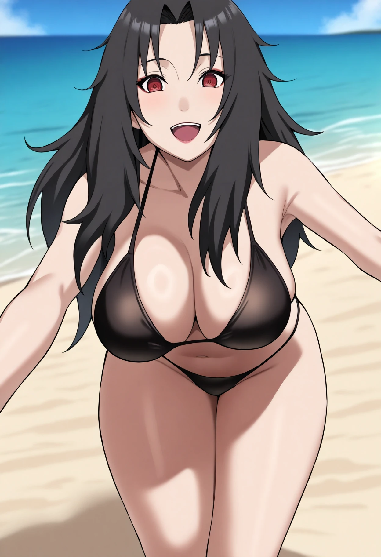 Basic prompts : 1girl, kurenai, black hair, long hair, red eyes, makeup