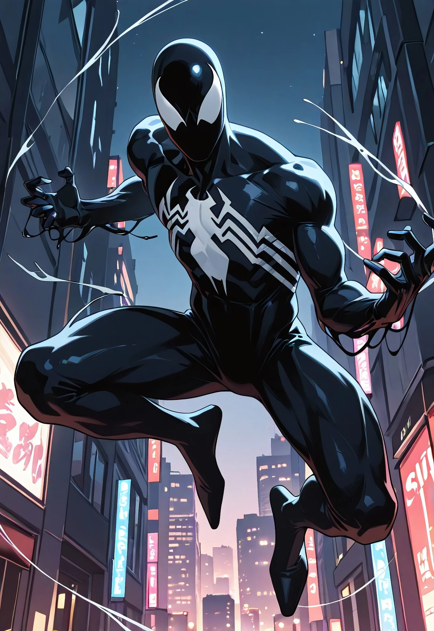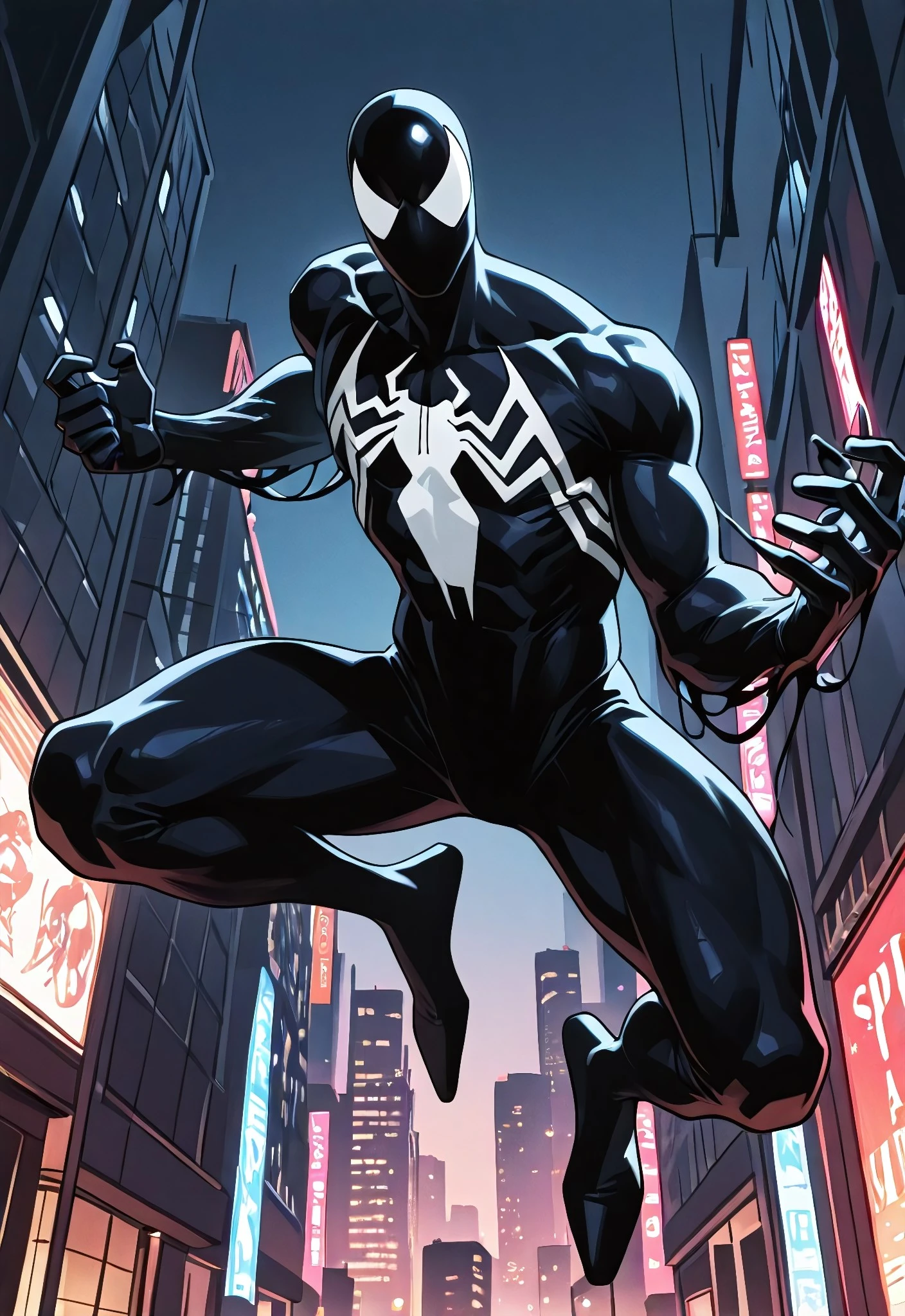 This LoRA is based on Spider-Man's black or symbiotic suit from the 1999 Amazing Spider-Man comics.