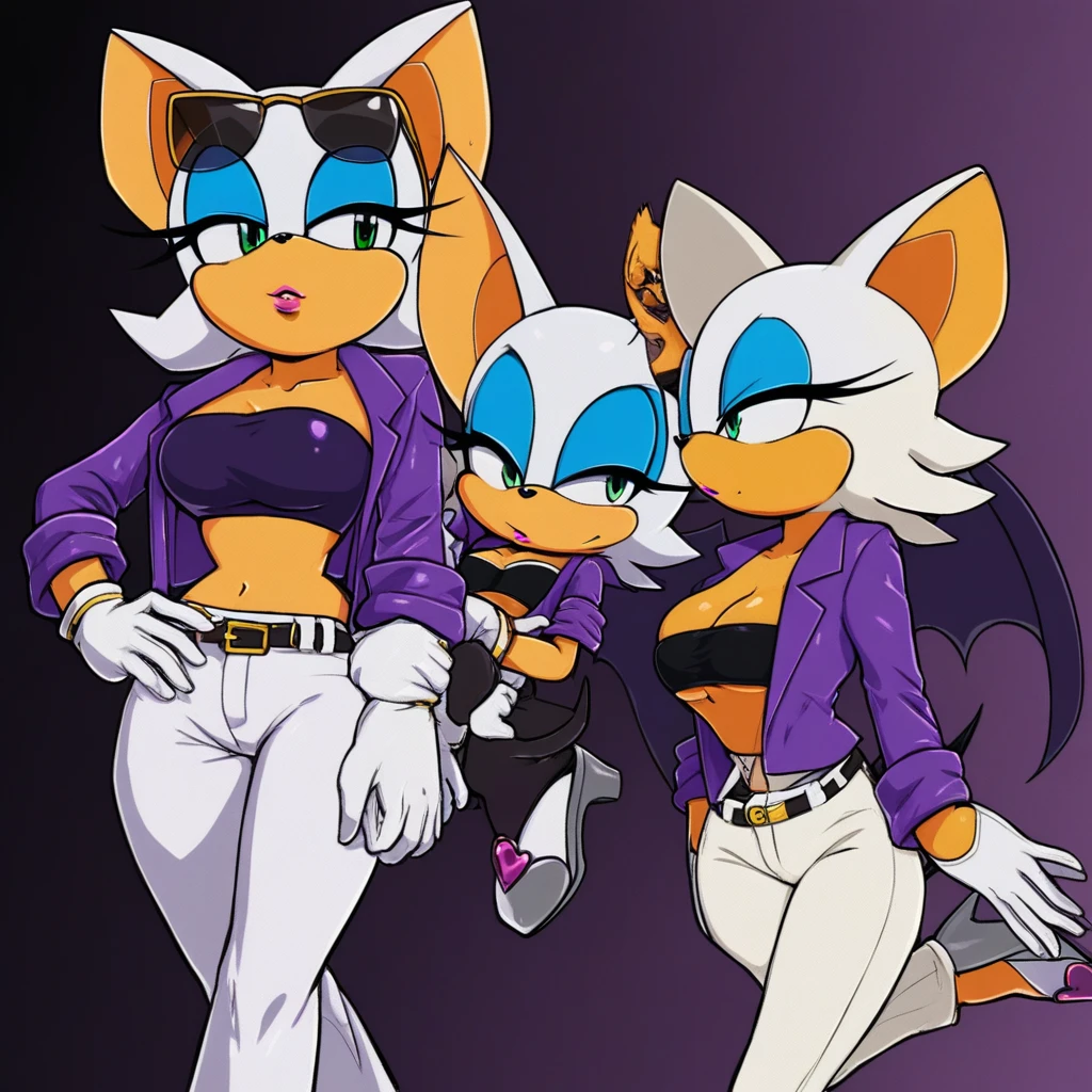 rouge, short hair, white hair, green eyes, bat ears, bat girl, bat tail, bat wings, furry female, makeup, eyeshadow, eyeliner,