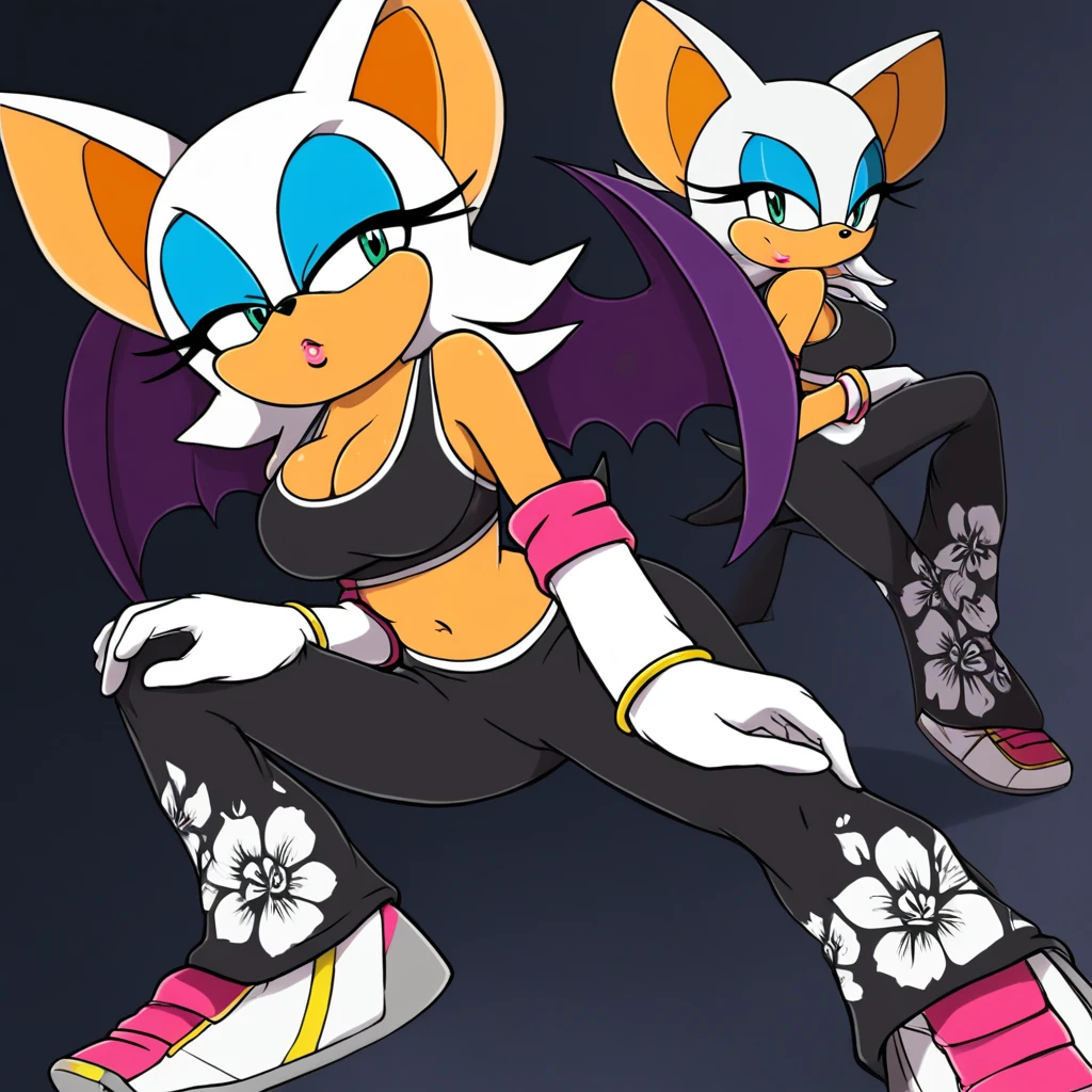 sports bra, yoga pants, floral print, elbow gloves, gloves, white gloves, shoes, bracelet,