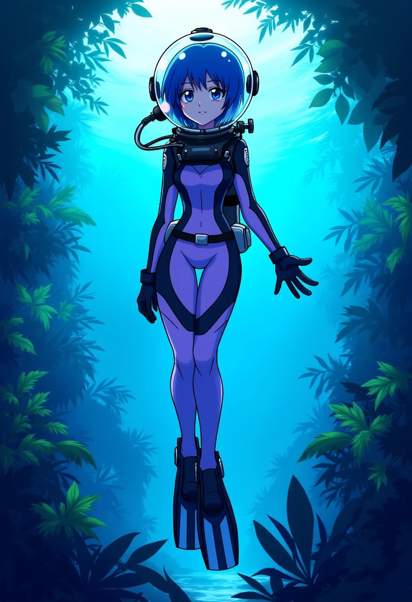 Reinforcement tags: full body diving suit, gloves, fins, underwater, swimming