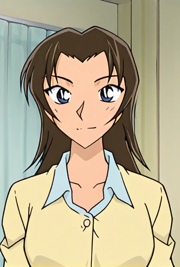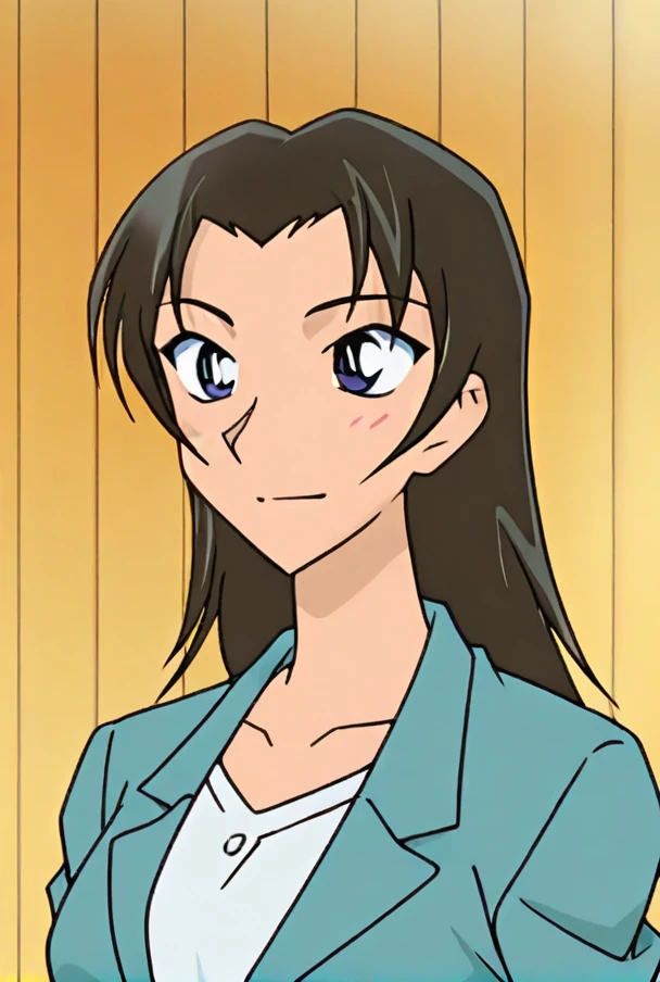 anime coloring, <lora:Kuriyama Midori - DETECTIVE CONAN:0.8>1girl, long hair, blue eyes, brown hair, Midori Kuriyama