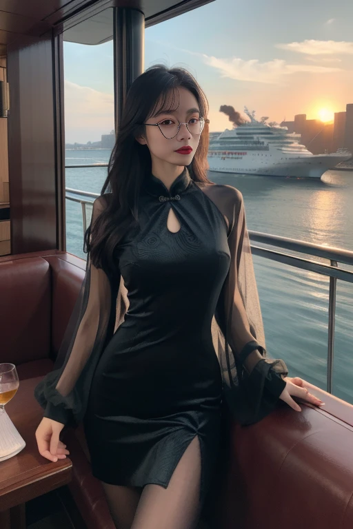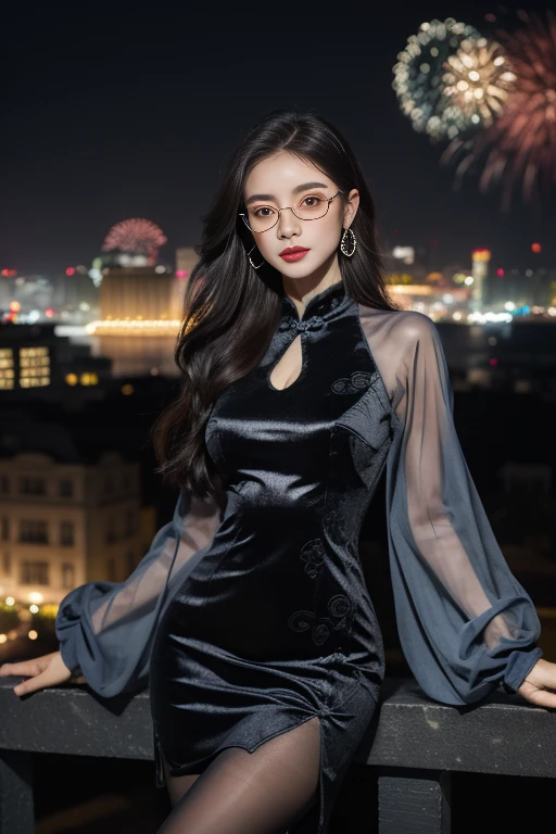 chinese clothes, china dress, see-through sleeves, long sleeves, cleavage cutout, pantyhose,side slit,