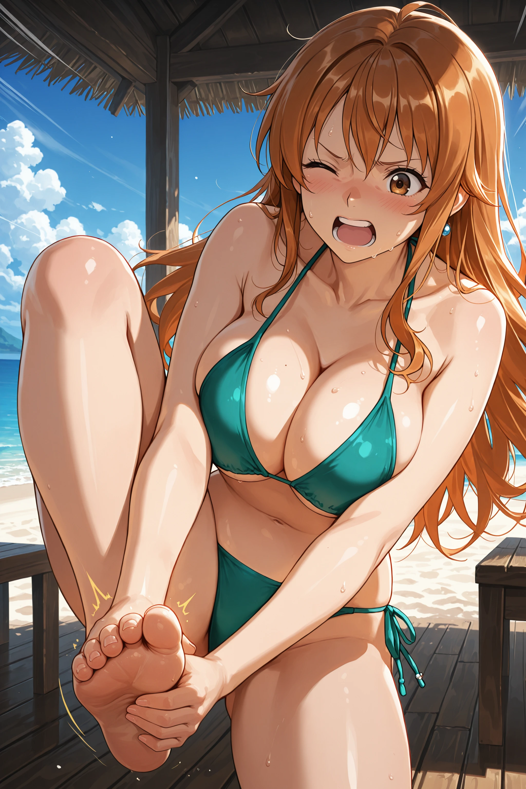 stub_toe, one_eye_closed, both_eyes_closed,  open_mouth, painful_expression, holding_foot,