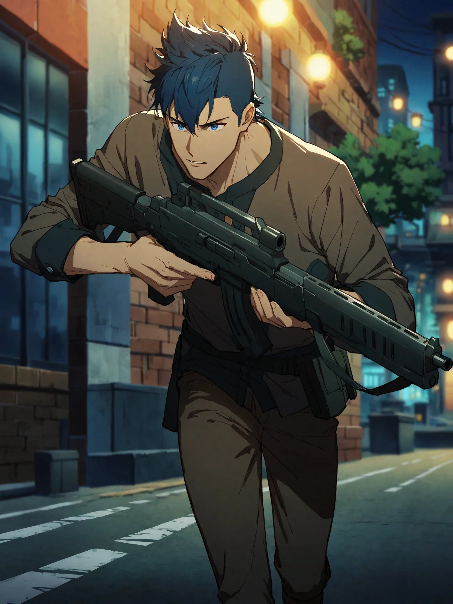 Messer Ihlefeld,1boy,solo,male focus,dark skin,blue hair,blue eyes,bara,mature,