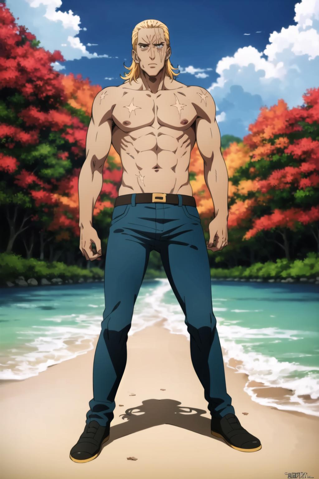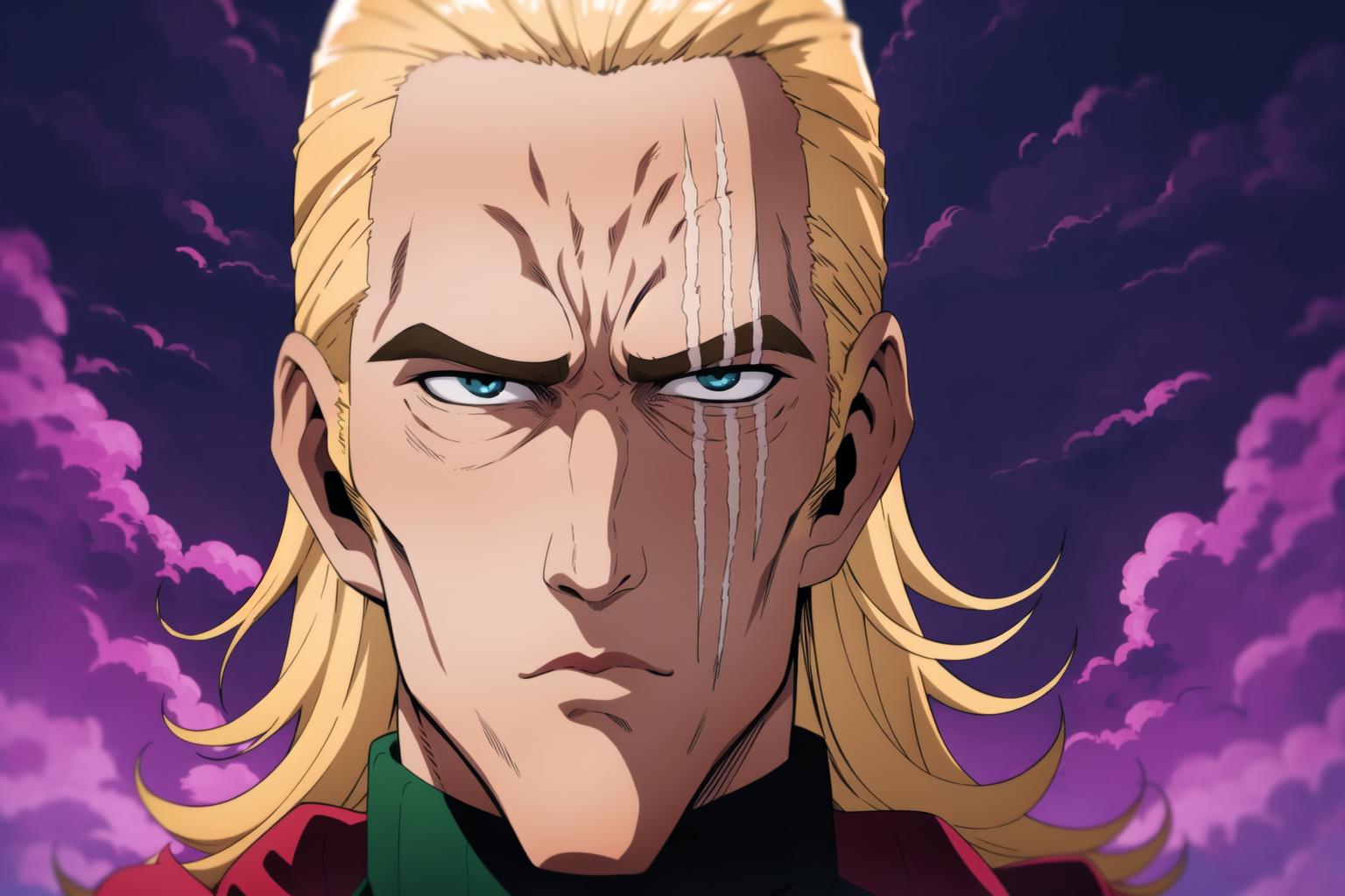Recommended words in prompt: 1boy, blonde hair, solo, scar, blue eyes, long hair