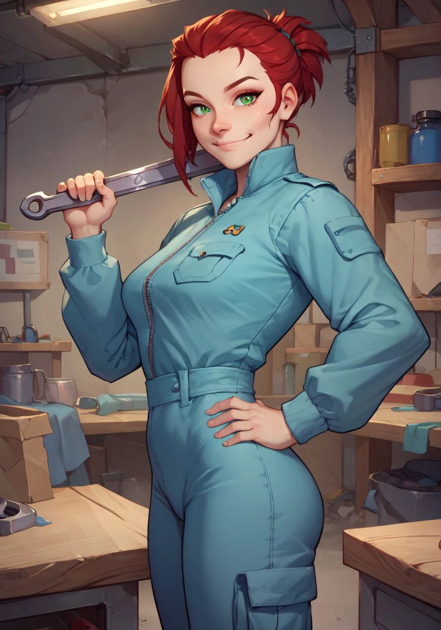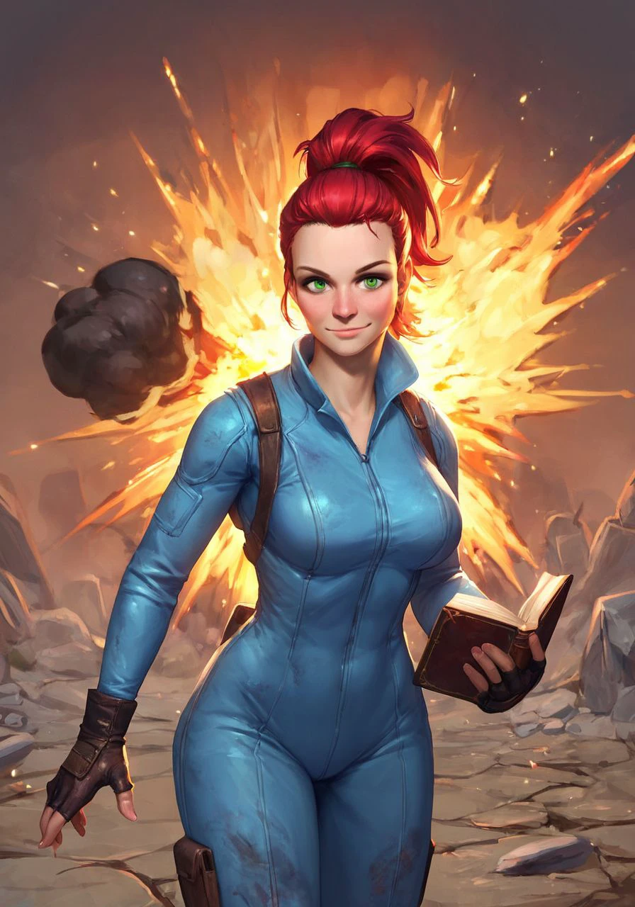 From Fallout 3, it's the Survival Guide author with the regionally-questionable accent, Moira Brown. Trained from about 50 screengrabs from a minimally-modified game. I had to get a mod to get rid of the color grading, because good lord, that game. I did not train any images of her "ghoul" appearance.