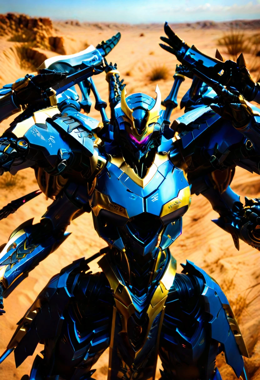 ikaruga_(knight's_&_magic), (mecha, robot, no humans, science fiction),armor, pink eyes, glowing eyes, (hyperrealistic), grown,extra arms,