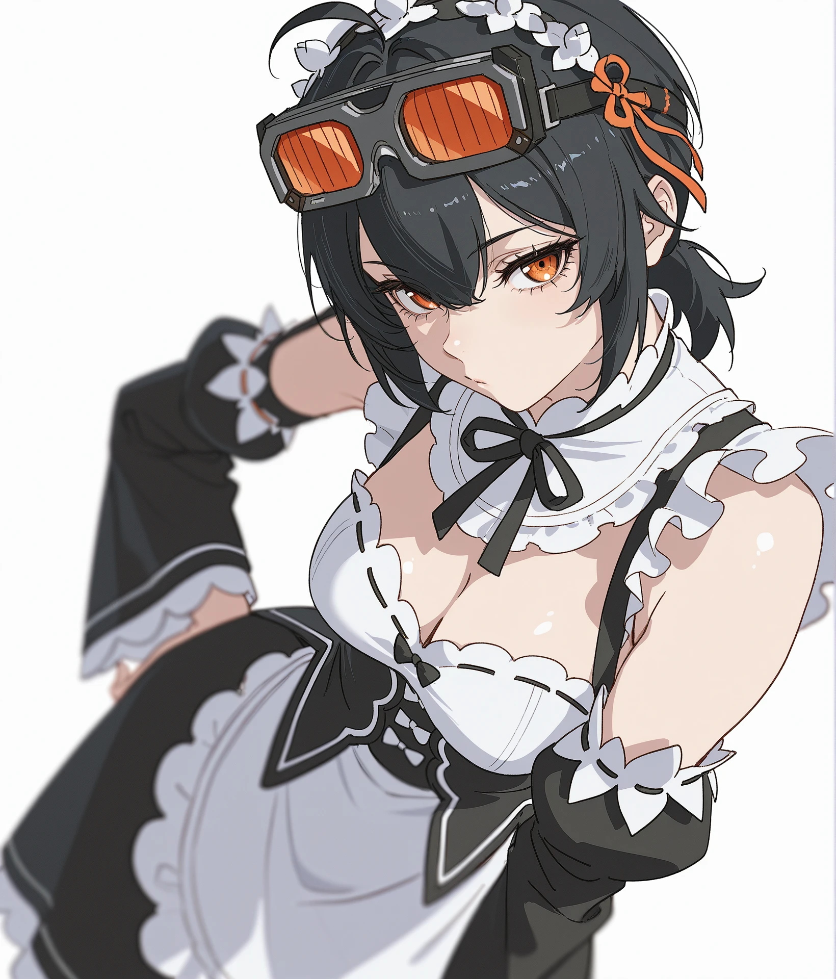 nose, eyelashes, short hair, black hair, hair between eyes, orange eyes, ahoge,