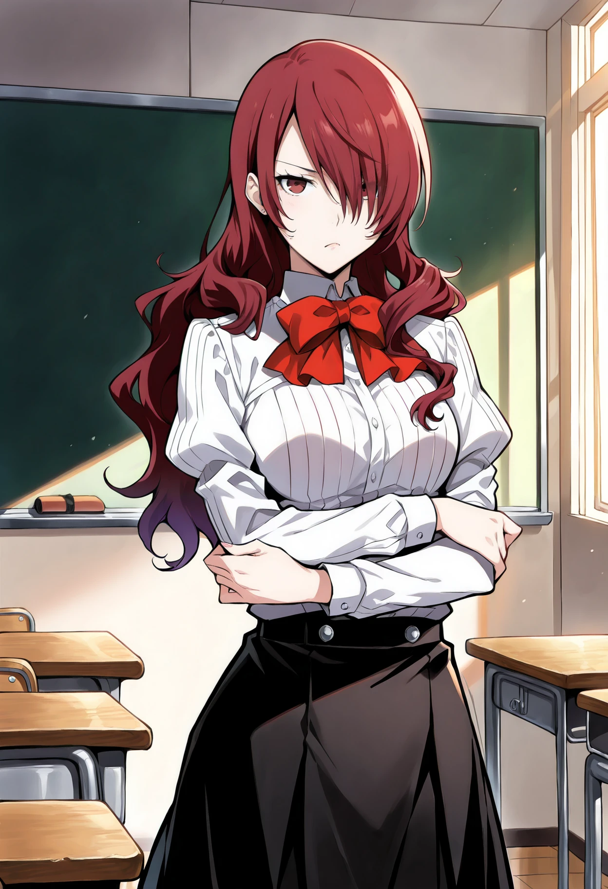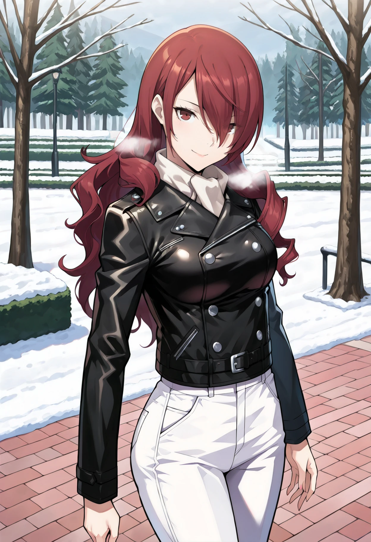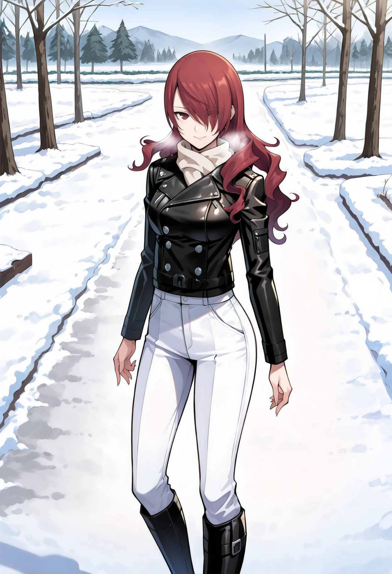 p3mitsuru, kirijou mitsuru, long hair, red hair, hair over one eye,Winter uniform: