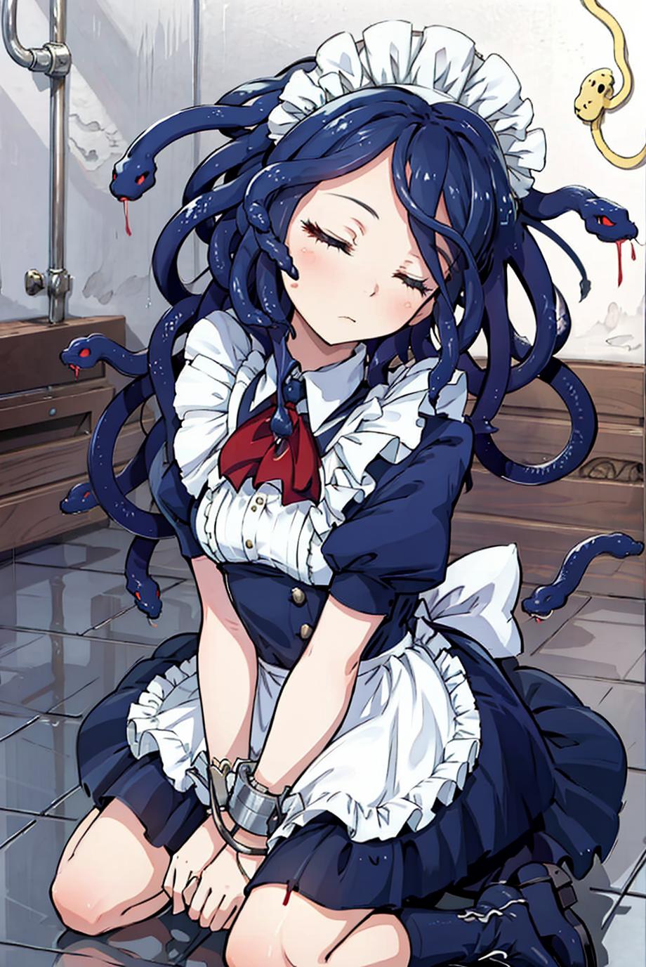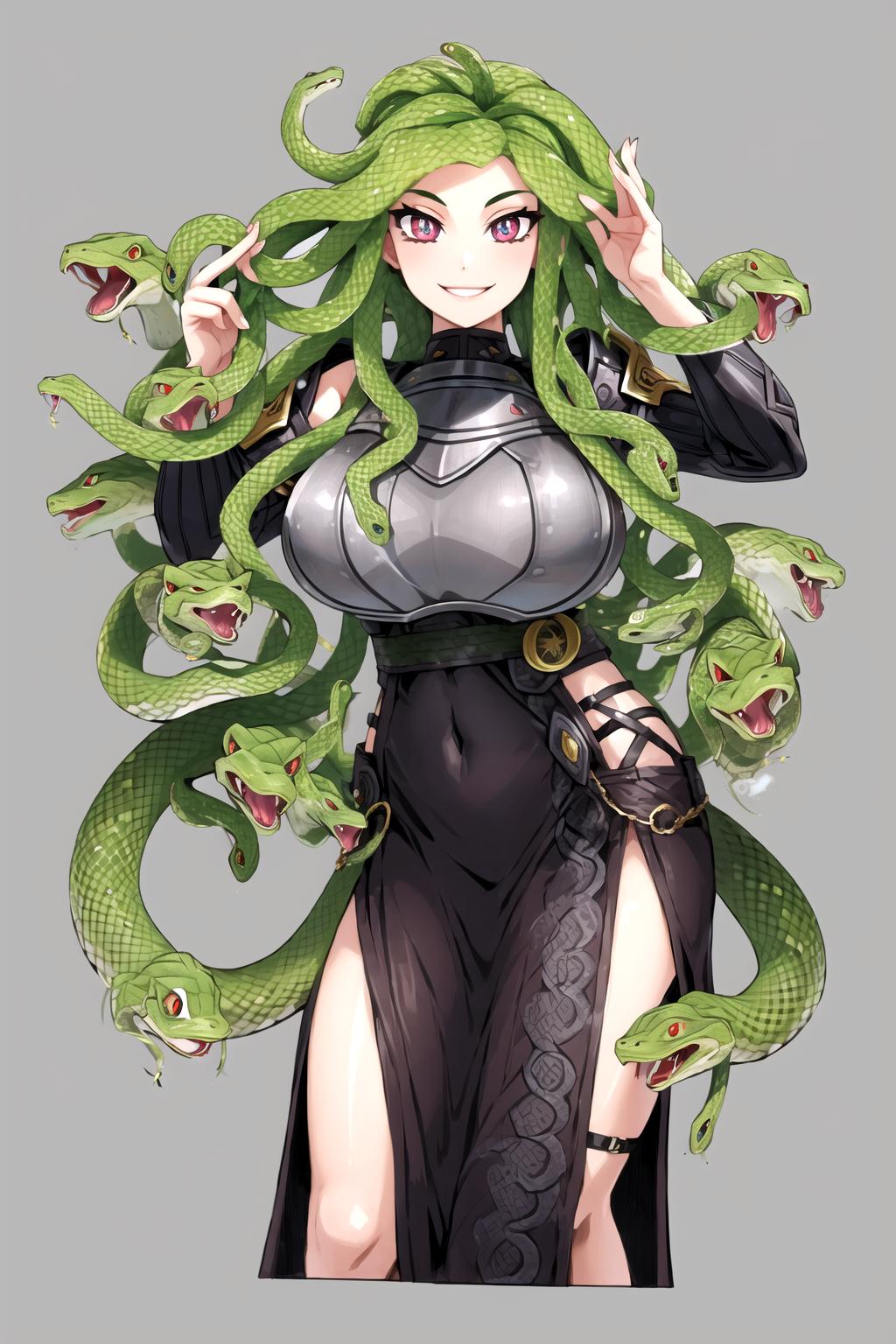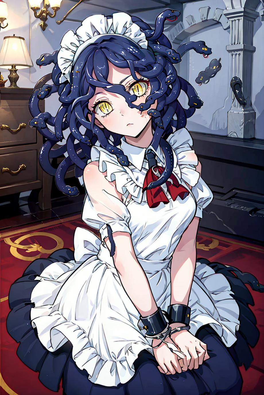 trained on 48 pics of characters with exclusively just snakes for hair as well as there mirrors for 96 total images. No character with part real and part snake hair (like Gorgon from fate) was included so the bot would understand to the best of its ability what snake hair would look like.