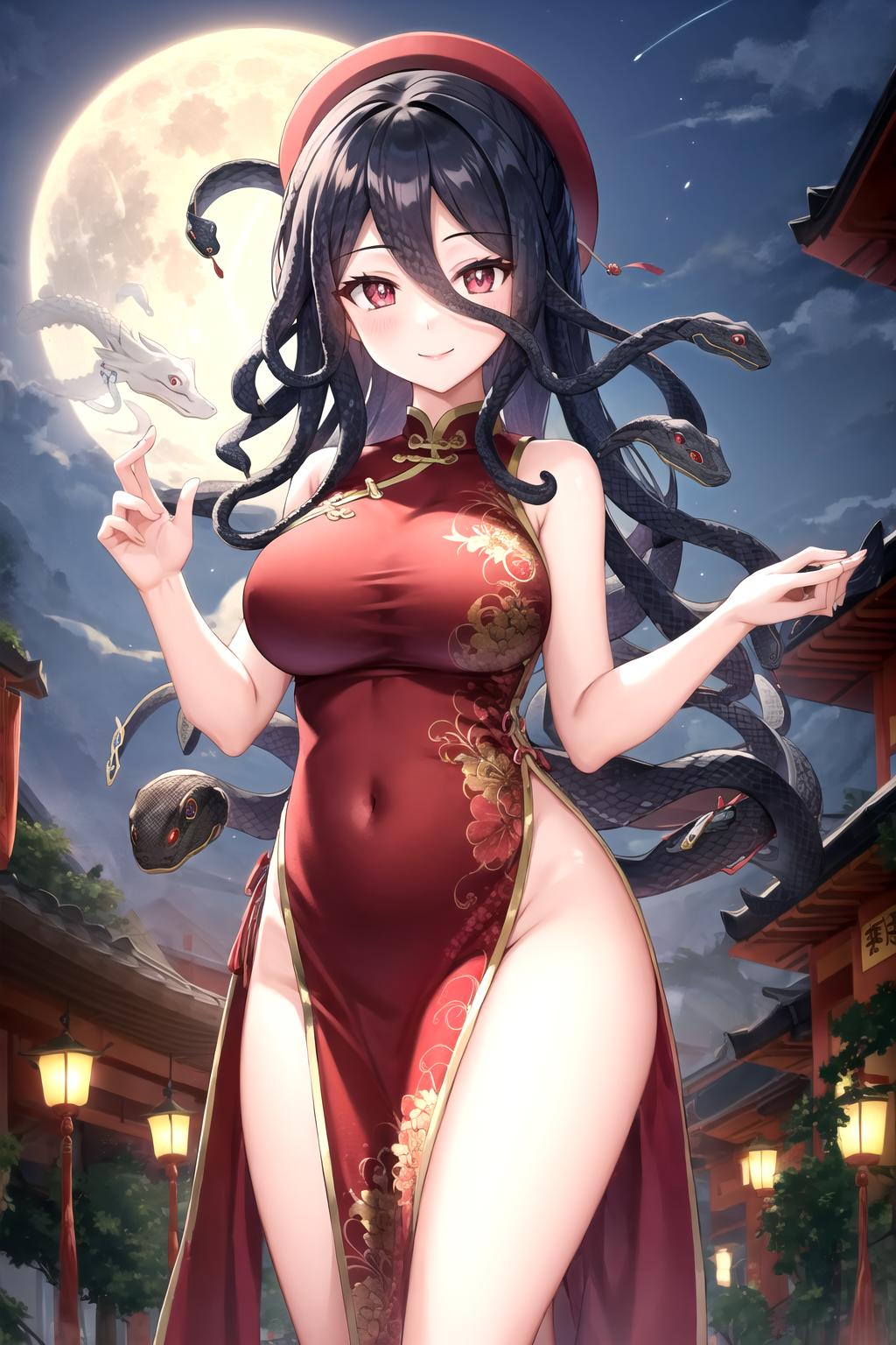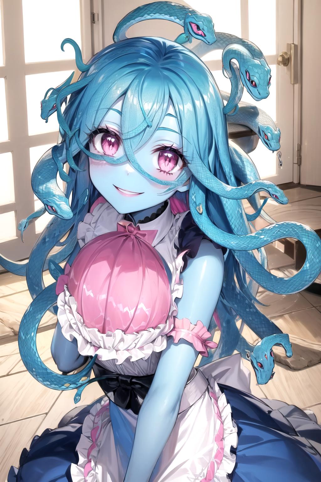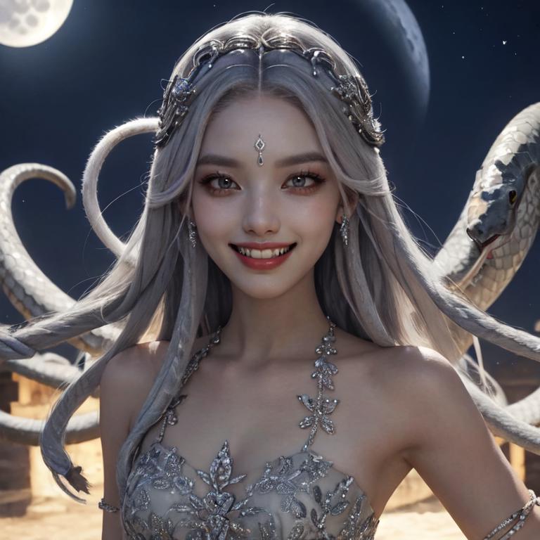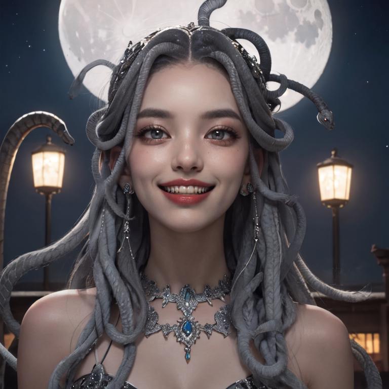 trained on 48 pics of characters with exclusively just snakes for hair as well as there mirrors for 96 total images. No character with part real and part snake hair (like Gorgon from fate) was included so the bot would understand to the best of its ability what snake hair would look like.