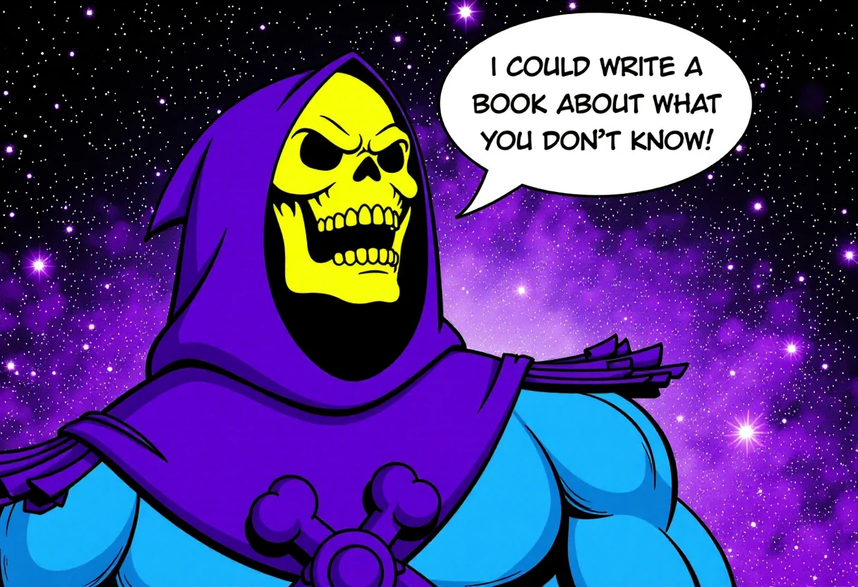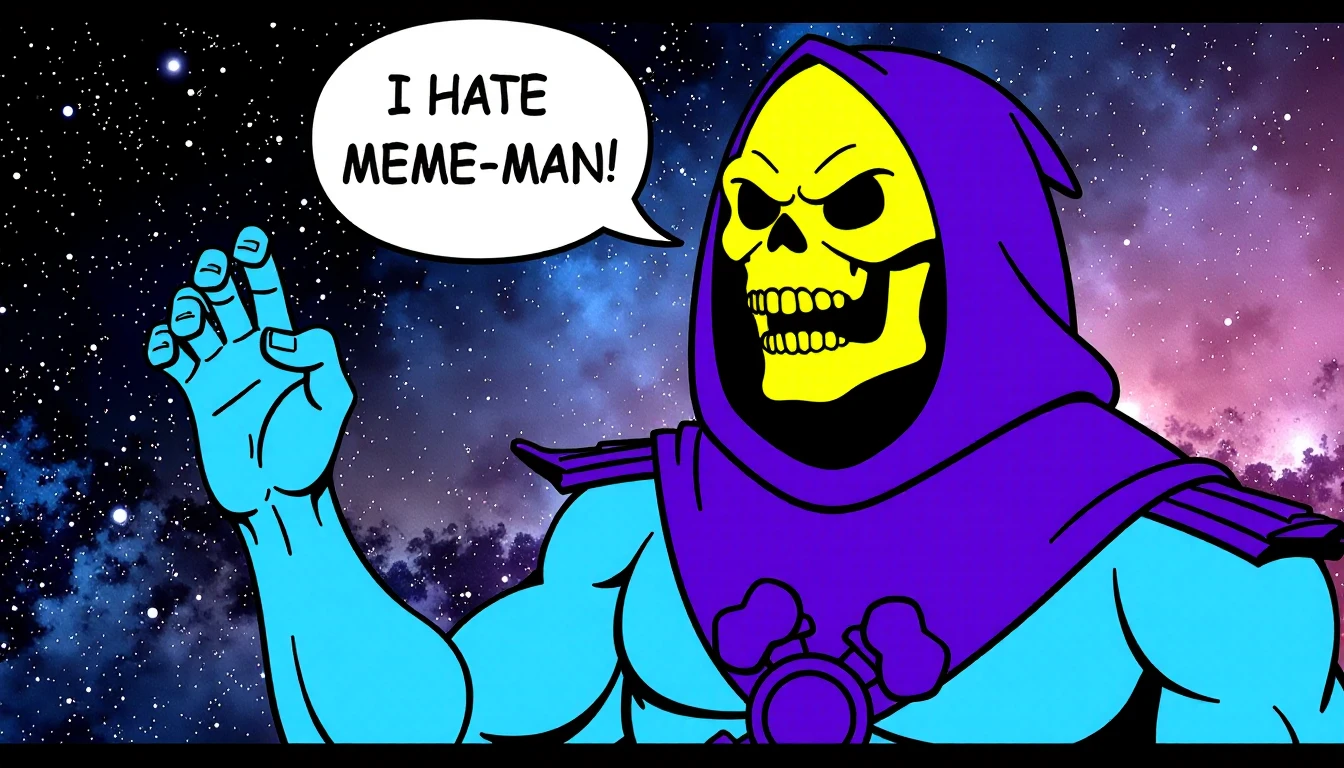 SKELETOR YELLING WITH A TEXT BUBBLE THAT SAYS