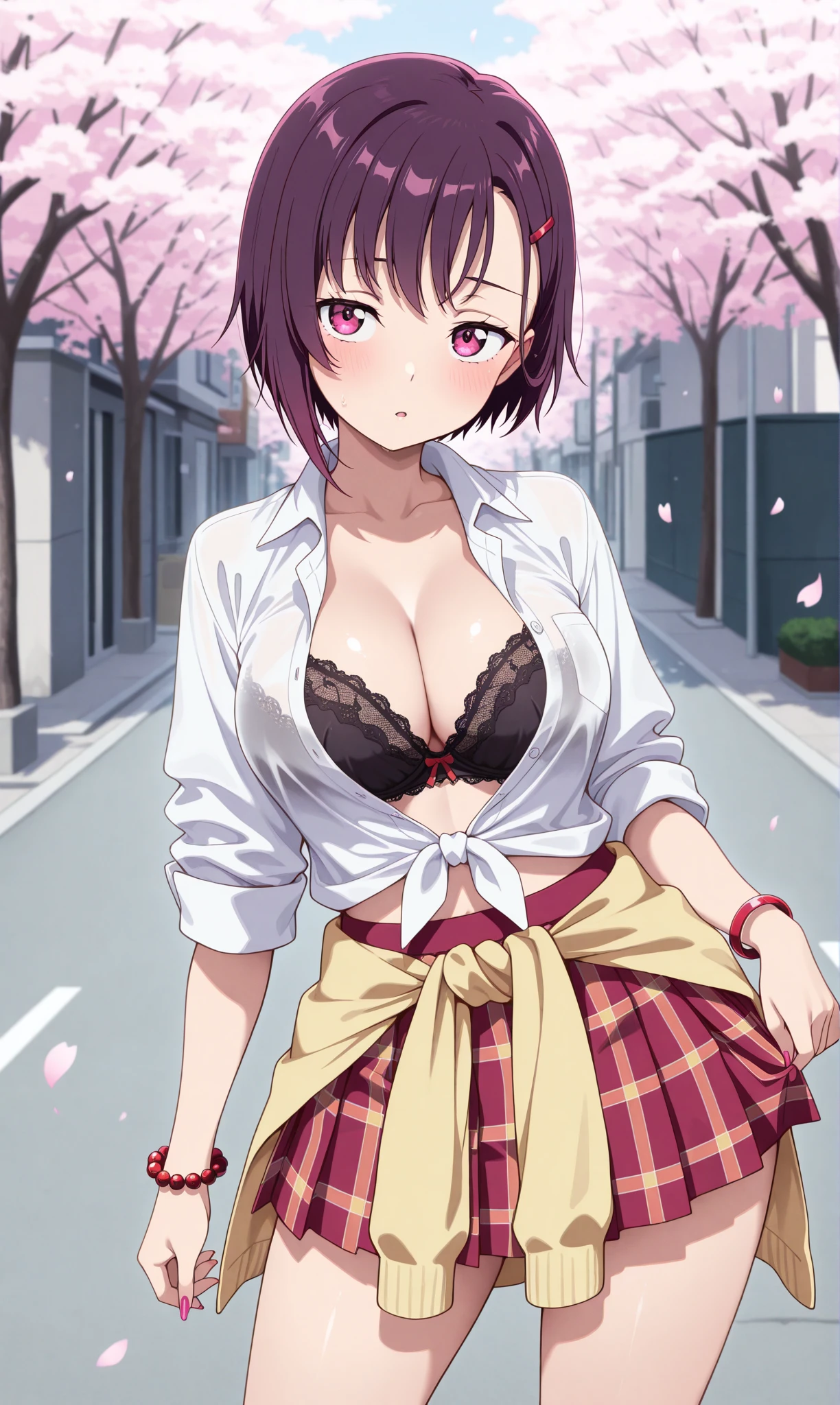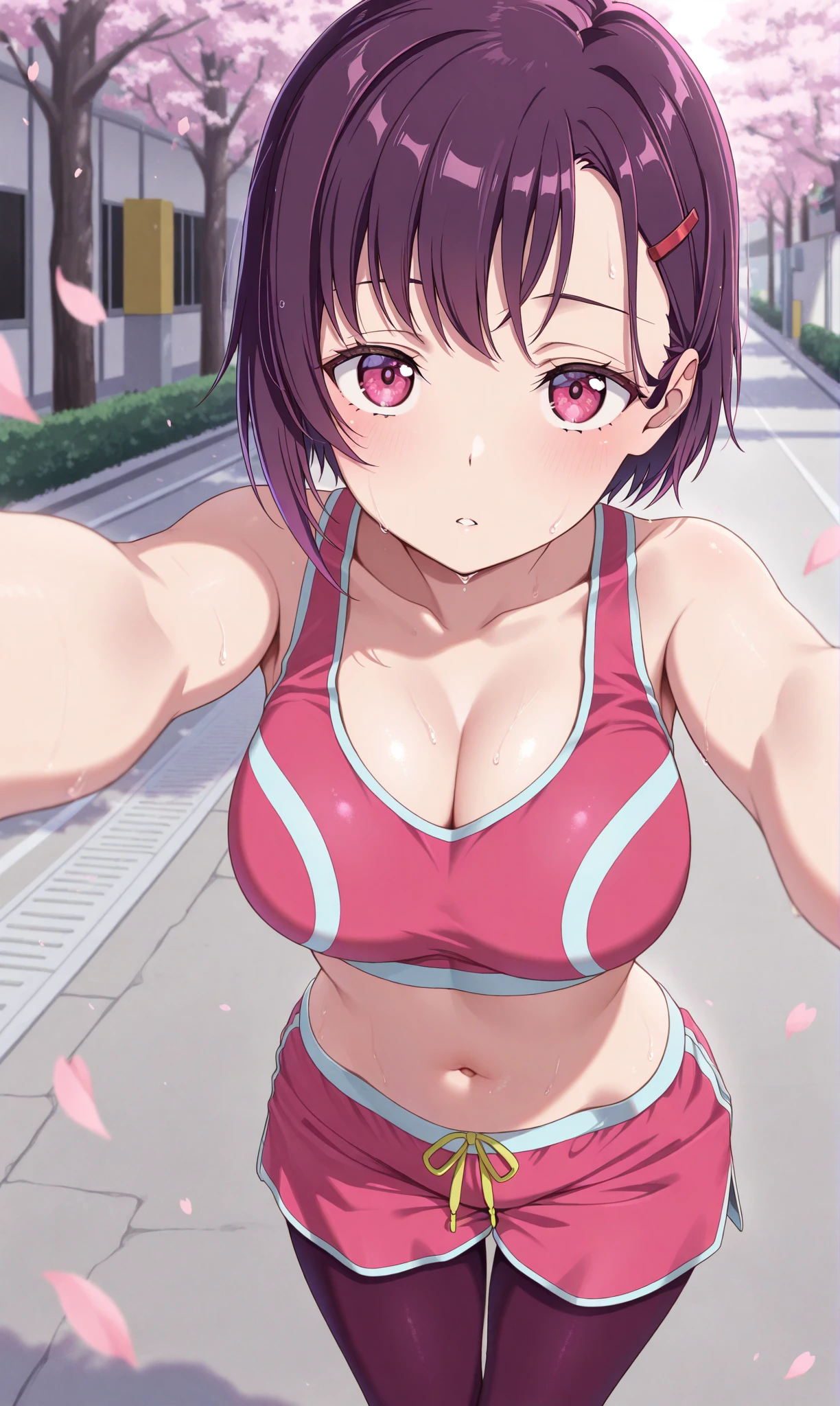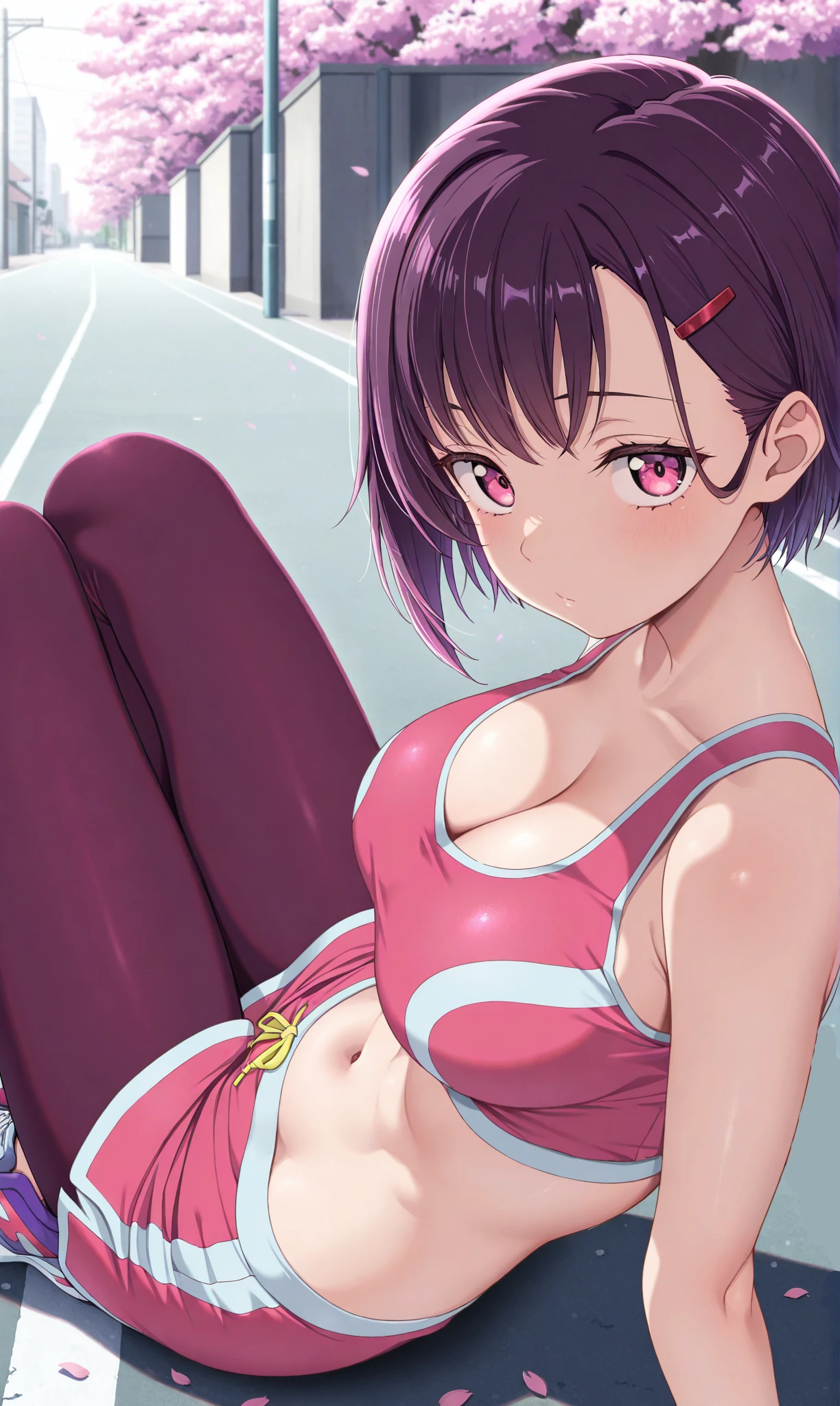 mikazuki shizuka, purple hair, pink eyes, hair ornament, hairclip๐ข๐๐๐ณ๐ถ๐:
