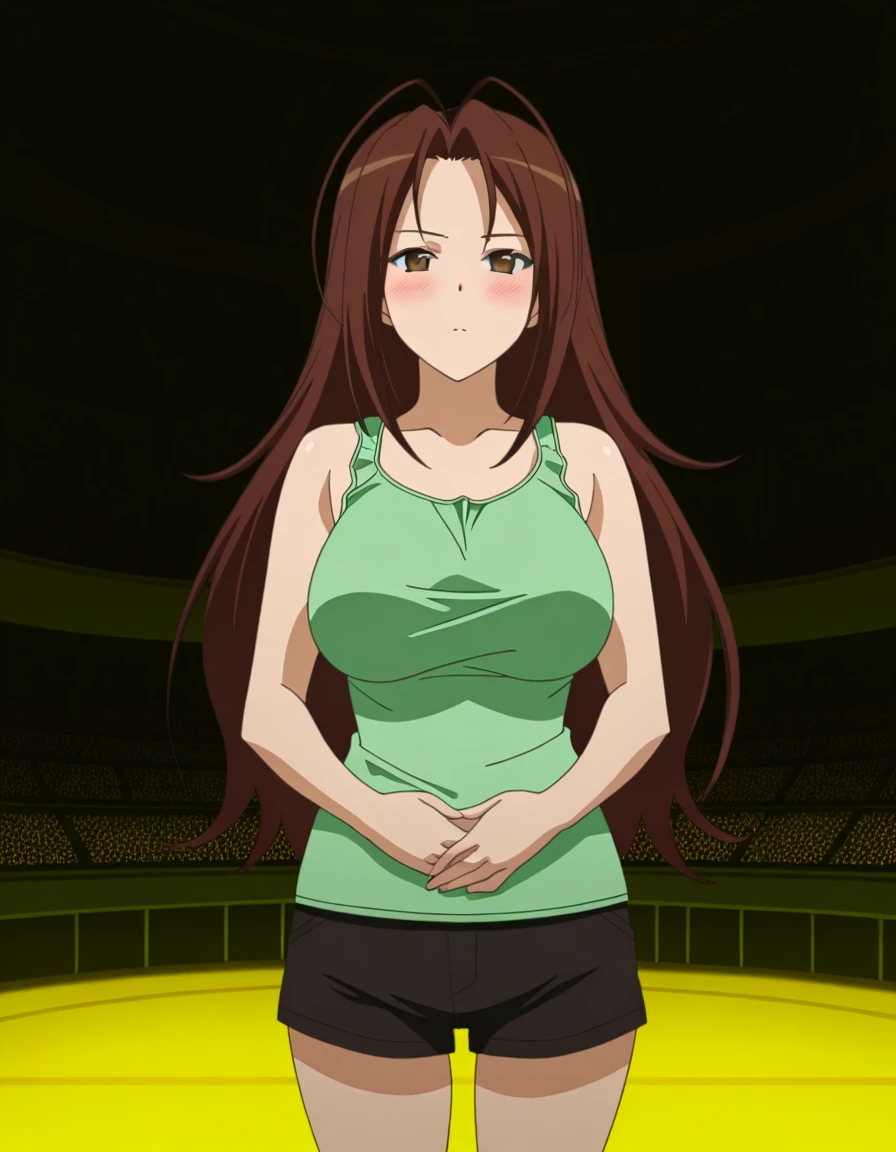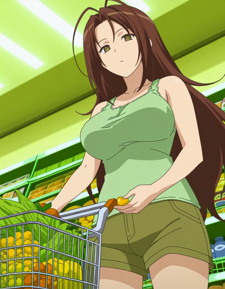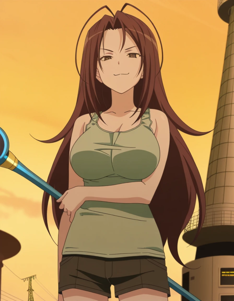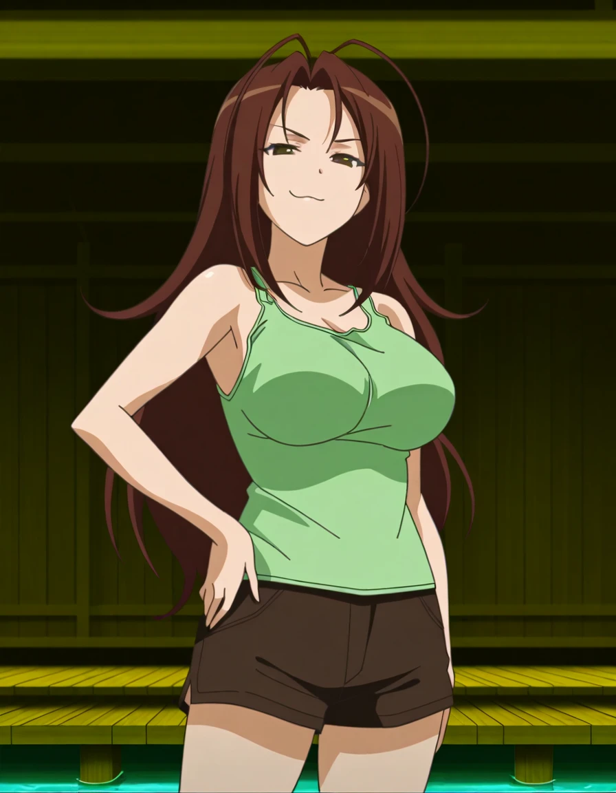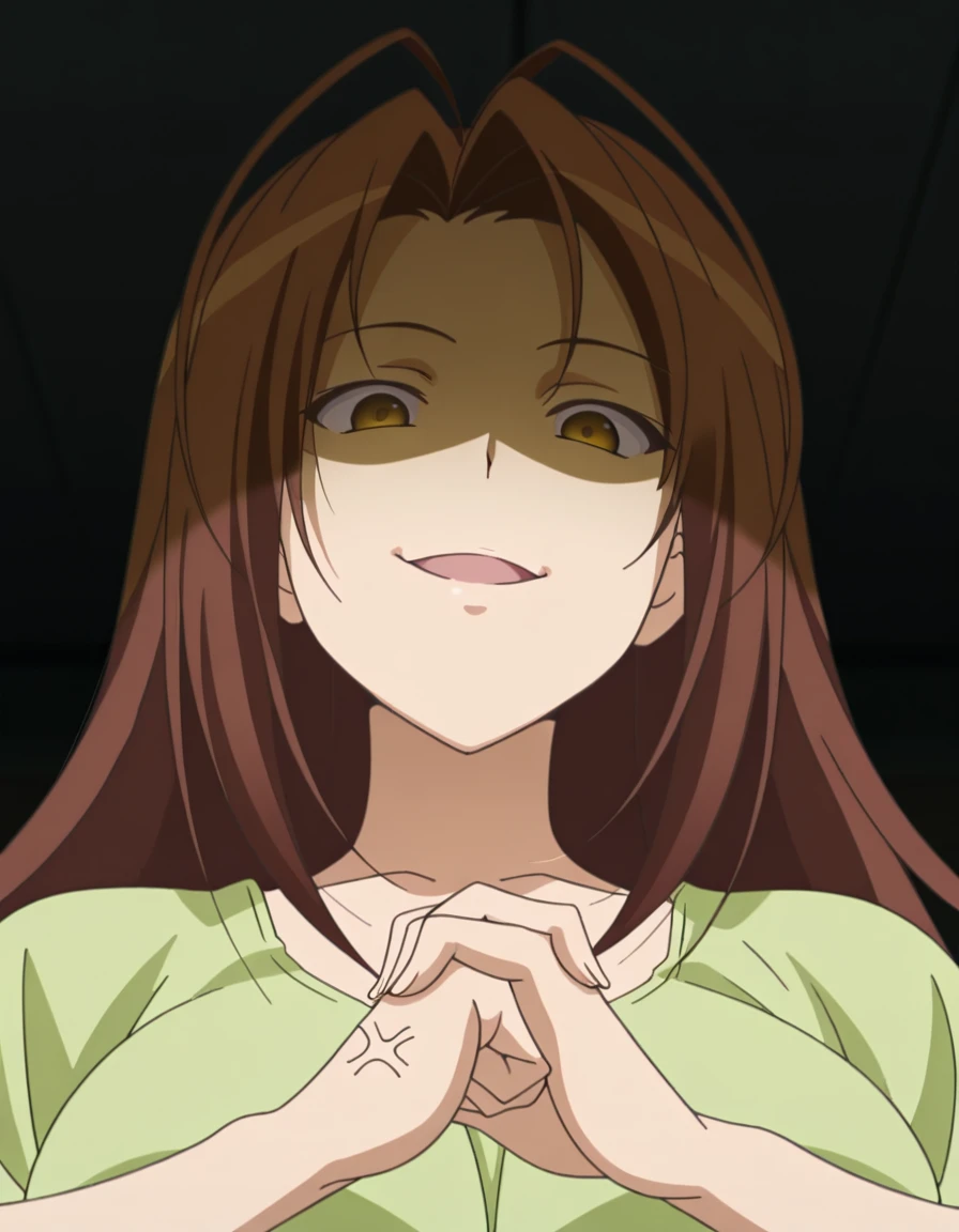 yahiro ifukube, long hair, brown hair, brown eyes, ahoge, antenna hair, mature female, breasts, anime screencap