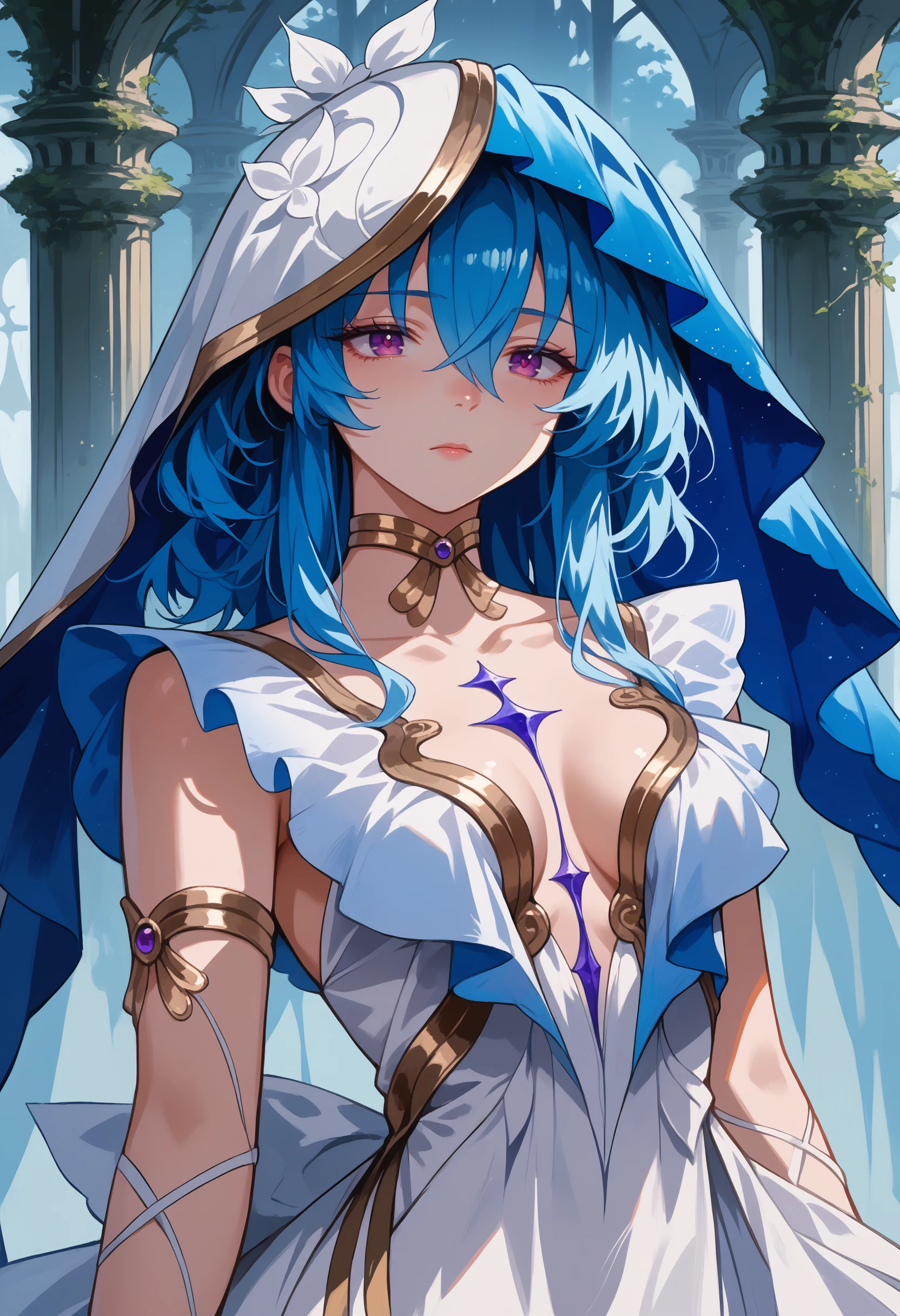 veil, choker, white dress, cleavage, armlet, collarbone
